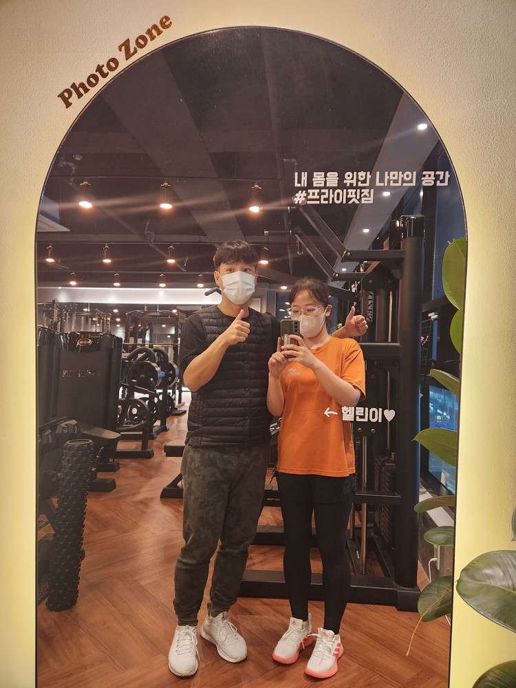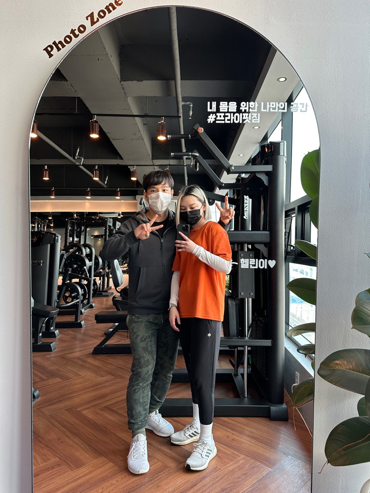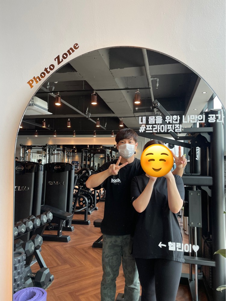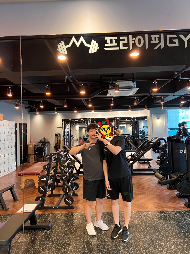 헬스장을 다녀야되나 싶었지만 혼자서 운동을 깔짝거리다그만둔 기억이 많아 전문가에게 도움을 받아운동을 하면 어떨까? 라는 생각에집에서 가깝고 평이 좋은 프라이핏짐을 선택하게 되었다. 내 담당 트쌤으로는 동현쌤이 되셨는데,