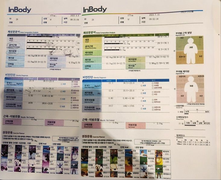 간만에 운동하려니 힘들었지만 쌤과 호흡을 맞춰가며 나름 열심히 하다보니 그만큼 재미도 붙아고 그러더보니 지방도 빠지고 근육도 붙어가고 변해가는 내몸이 눈에 보이기 시작했다^^