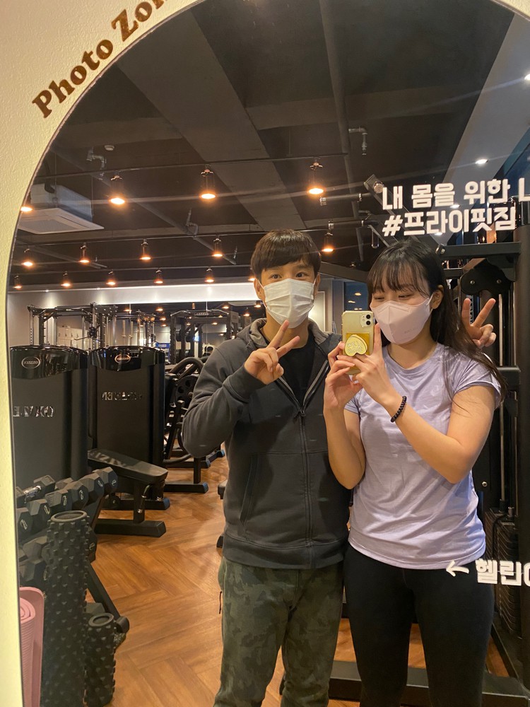 집 주변에서 할만한 운동을 찾다가 발견한 프라이핏짐 동쌤! 피티 때마다 유쾌하게 운동 진행해주시고, 물어보는 것도 많은데 늘 친절하게 답해주셔서 피티 다니는 재미가 있어요😀😀 요즘은 몸에 근육이 붙고 조금씩 발전하는 스스로를 보면서 운동에 재미를 느끼고 있습니다💪 앞으로도 남은 횟수 잘 부탁드려요 쌤 ^__^