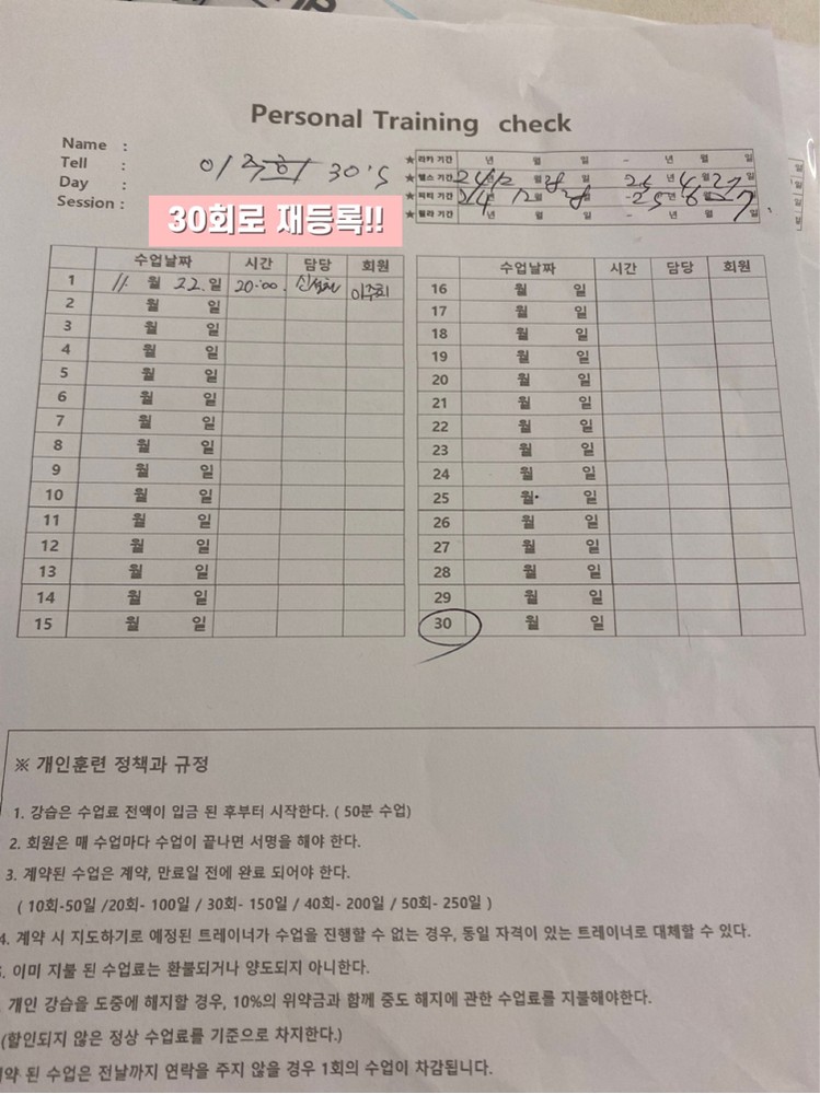 PT횟수가 얼마 안 남았는데 재등록하고 . 열심히 수업받을게요, 누구에게 배우느냐도 정말중요한것같아요. 선생님을 만난것도 행운이고 제 인생의 터닝포인트였습니다, ~~
