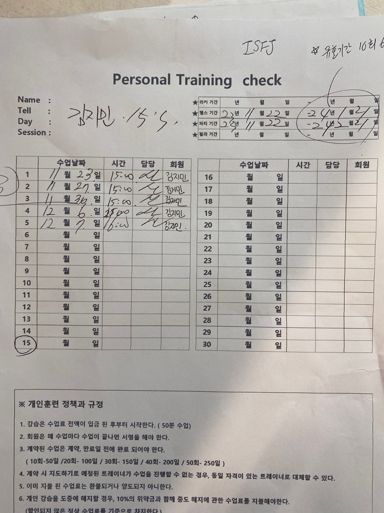 제 인생 첫 운동을 선생님과 함께 6개월 넘게 진행하였습니다!💪