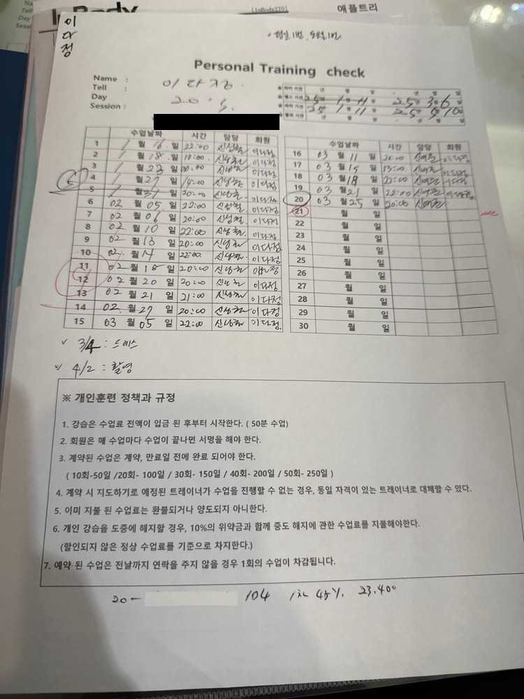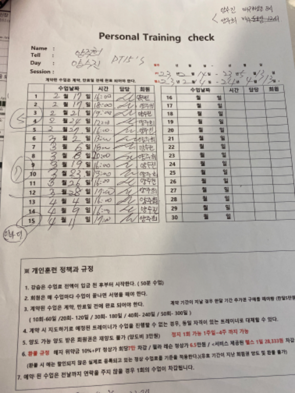 쌤은 진짜 열정있게 잘 알려주십니다 하기싫을때도 같이운동하는거처럼 저보다 더 땀흘리며..알려주십니다ㅋㅋ 요즘같은 시대에 좋은선생님 만나기 쉽지 않아서 피티할생각없었는데 무료체험 받고 바로 20회 등록했습니다. 진짜 너무바빠서 개인운동은 잘 못나오고 있지만 최대한 나오려고 합니다 ㅋㅋ혼자 했으면 운동 더 안했을꺼 같아요. 앞으로 끝나고 쭉 더 같이 할 예정입니다 잘 부탁드립니다