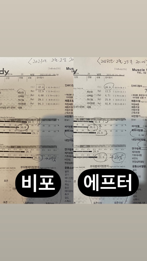 운동경력 없음, 저질 체력, 아무 생각없이 PT등록, 운동 목적이 뭐냐고 물으셔서 자세교정, 다이어트? 딱히 생각나는 대답이 없어서 그냥 말했습니다. 비싼 돈 주고 PT를 받음 돈이 아깝지 않게 열심히 해야된다며 정말 성실하고 열정적으로 수업을 해주셨죠. 식단 관리, 멘탈 관리, 근육 쓰는 방법, 수업 없는날에도 같이 운동하자고 불러내주시고 운동에 재미를 붙여주셨죠. 덕분에 기초대사량이며, 근육량이 늘고, 체지방은 7kg이 빠지는 아주 탄탄한 몸매를 갖게 되었습니다.