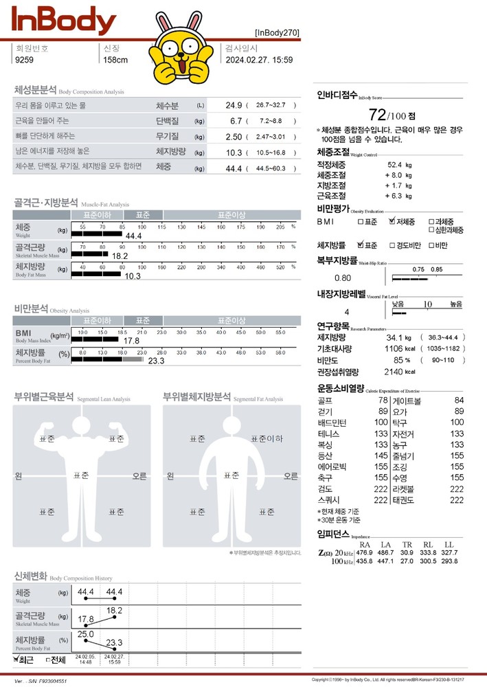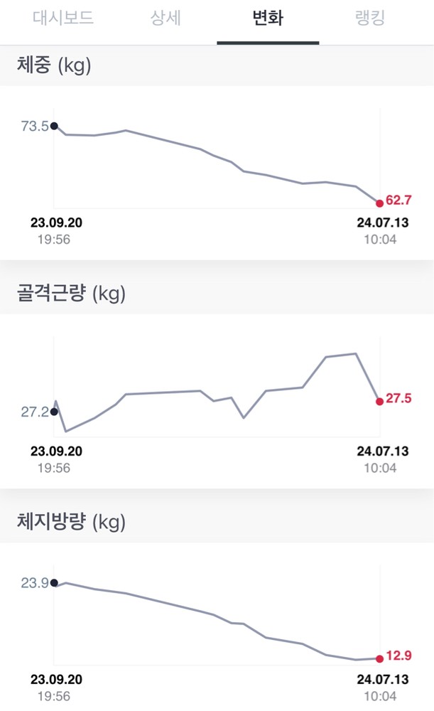 체지방률 : 7.9 -> 12.7 (미달 -> 표준)