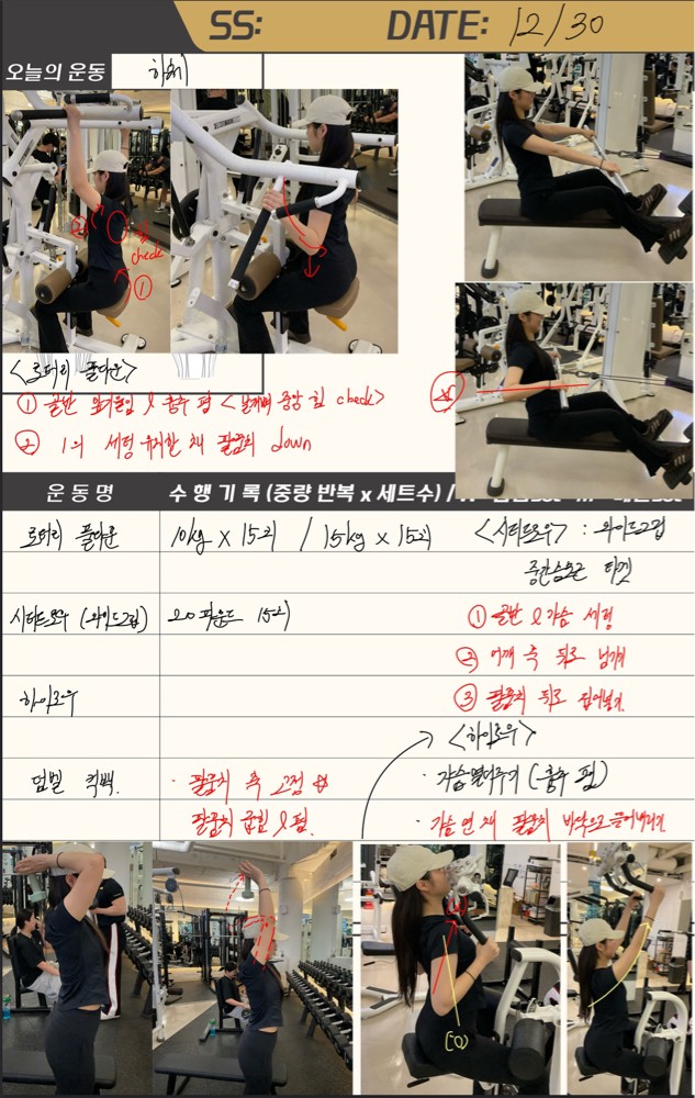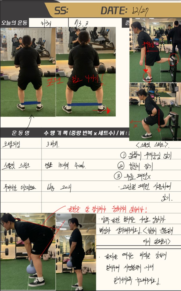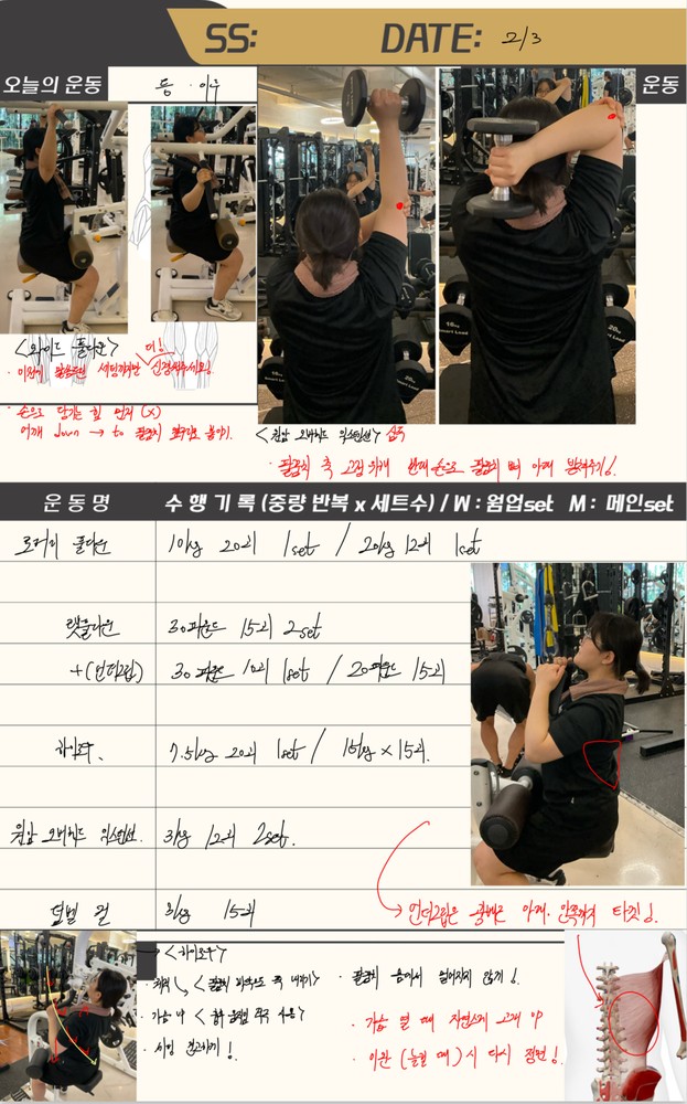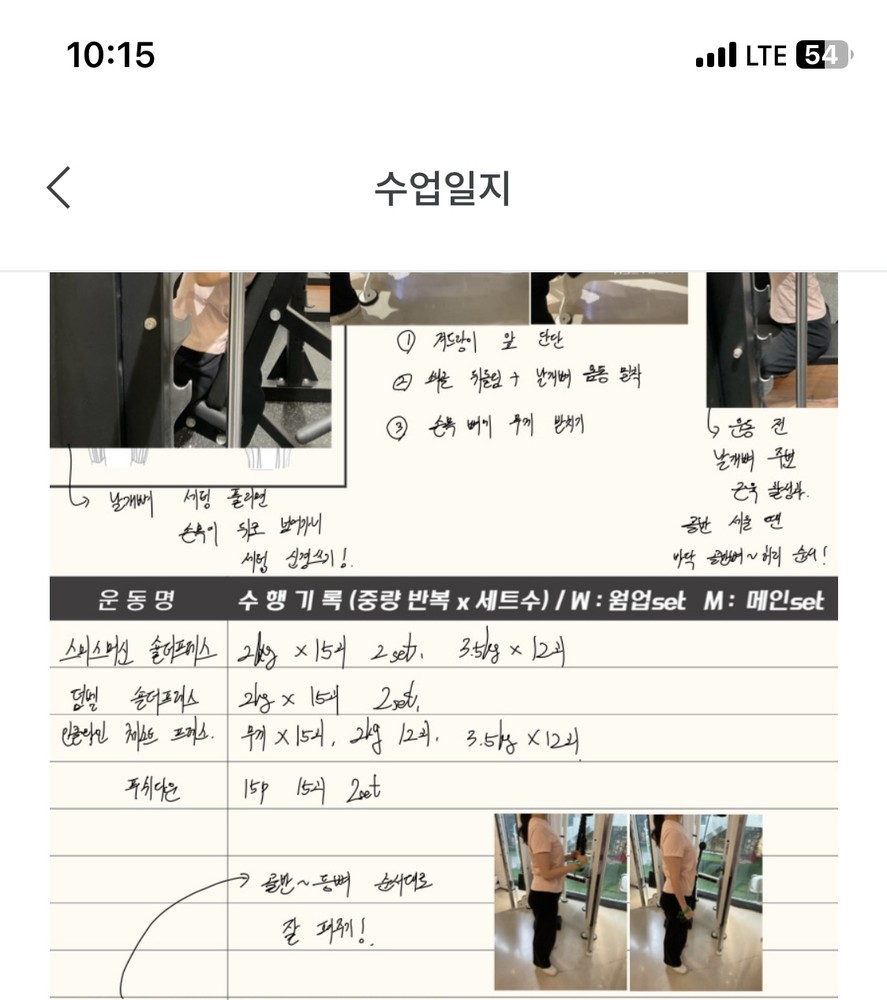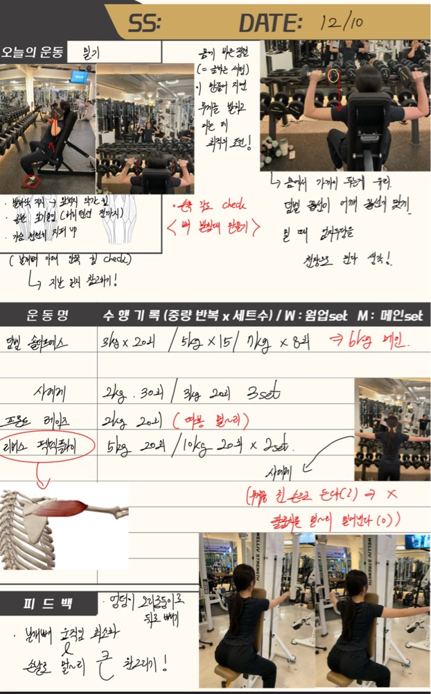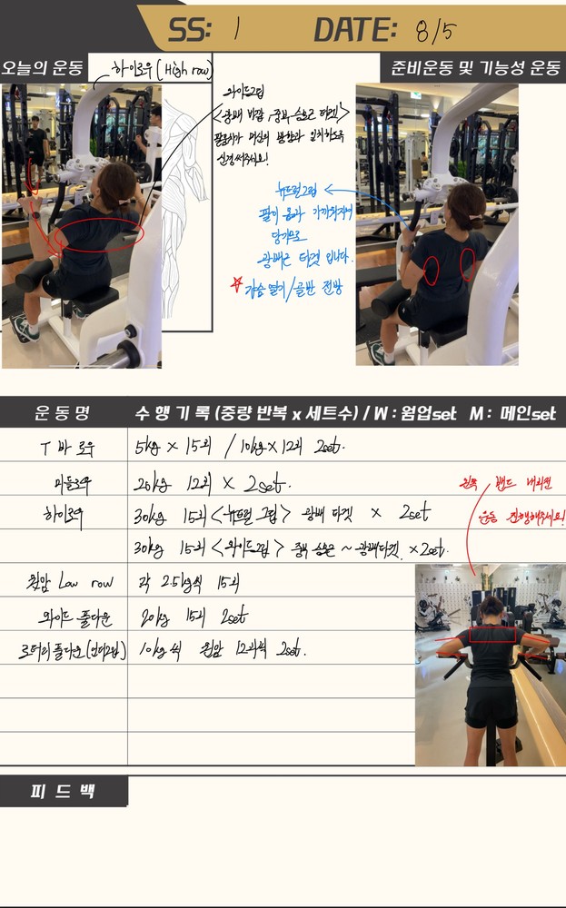 그리고 수업이 끝나면 일지를 써주시고 제가 운동하는 영상을 찍어주셔서 혼자 복습할때도 편리했습니다!