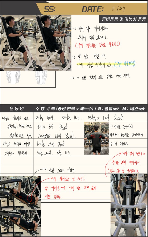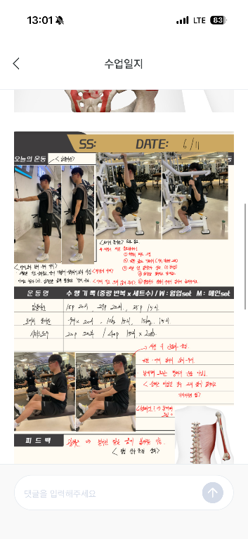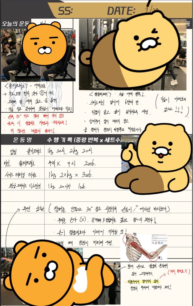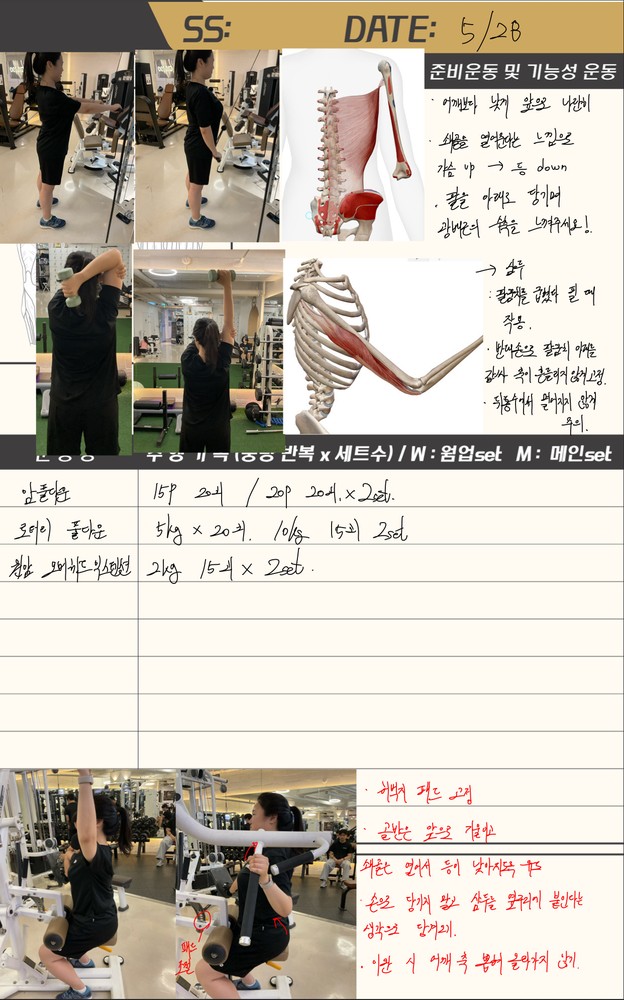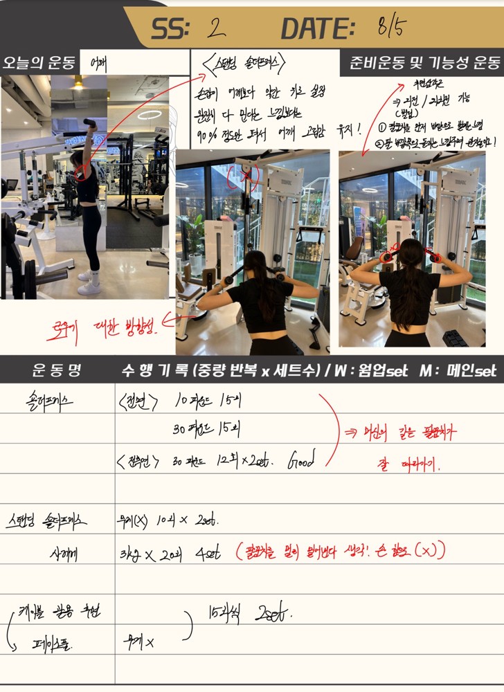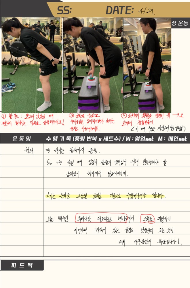 그리고 수업이 끝나면 일지를 써주시고 제가 운동하는 영상을 찍어주셔서 혼자 복습할때도 편리했습니다!