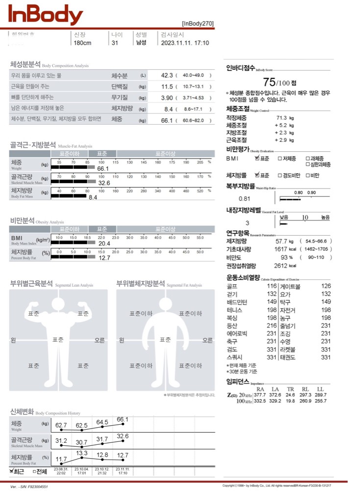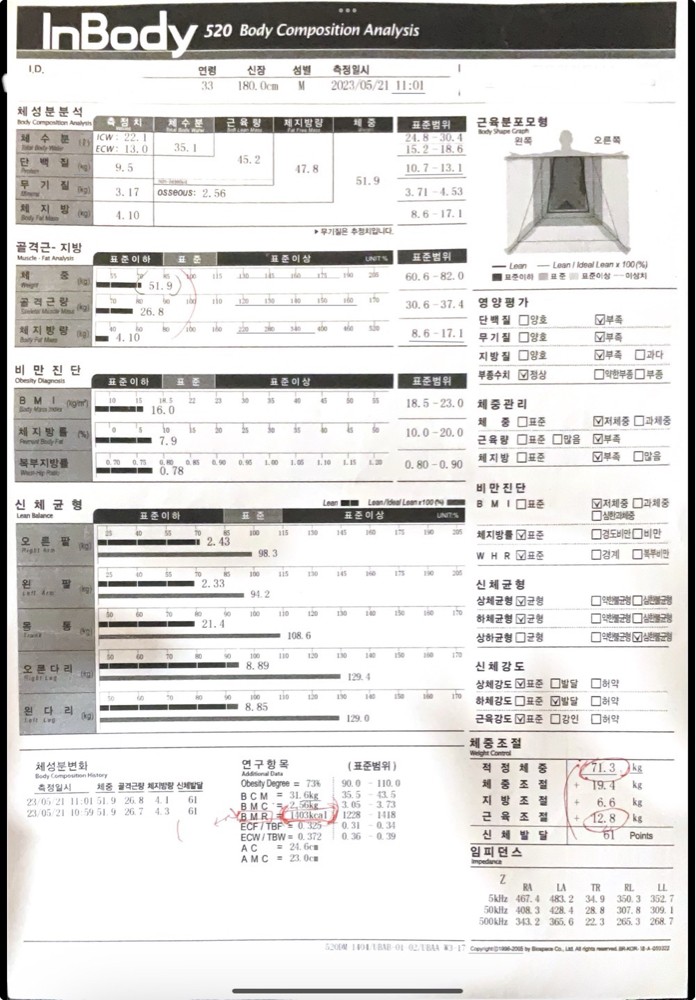 골격근량 : 26.8 -> 32.6 (5.8kg 증가)