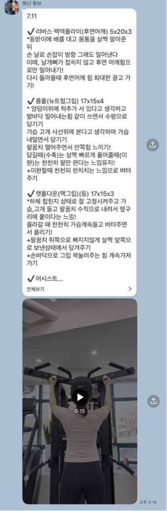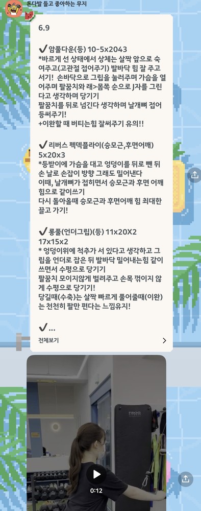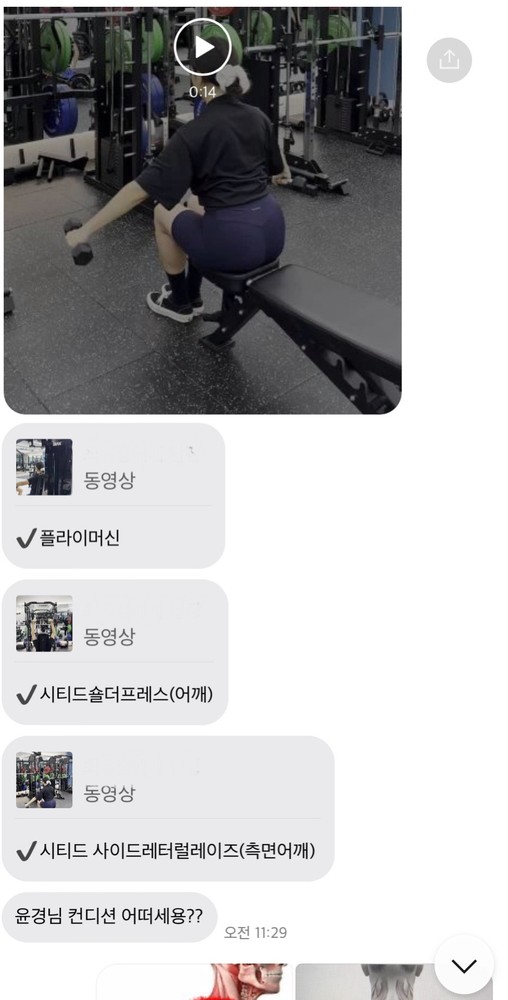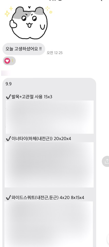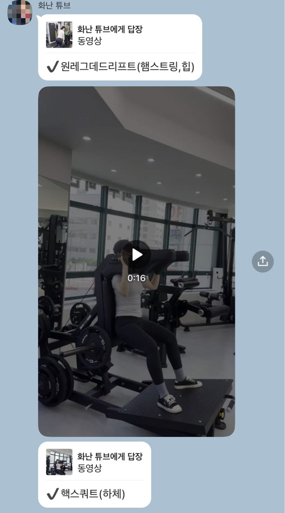 그리고 매번 끝나고 운동내용이랑 영상보내주셔서 혼자 운동하기도 쉽고
