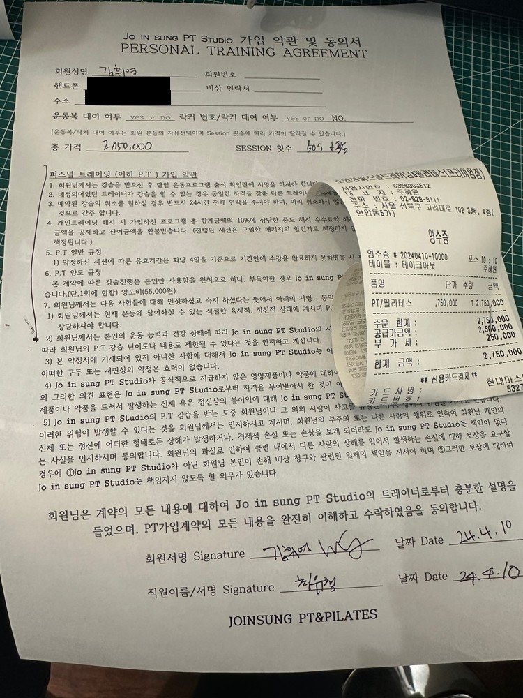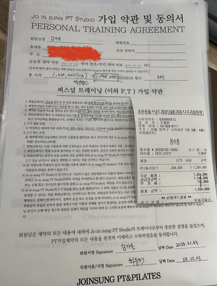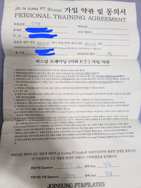 쌤과 면담을 하고 바로 수업에 들어갔어요. 외국인이라서 못 알아들을까 봐 걱정을 많이 했는데 쌤이 친절하게 쉬운 말로 지도해셔서 너무 감동스러웠어요. 그리고 타겟 부위와 자세 포인트까지 자세히 가르쳐주셔서 체험 수업 끝나고 바로 10회 피티를 등록했어요~