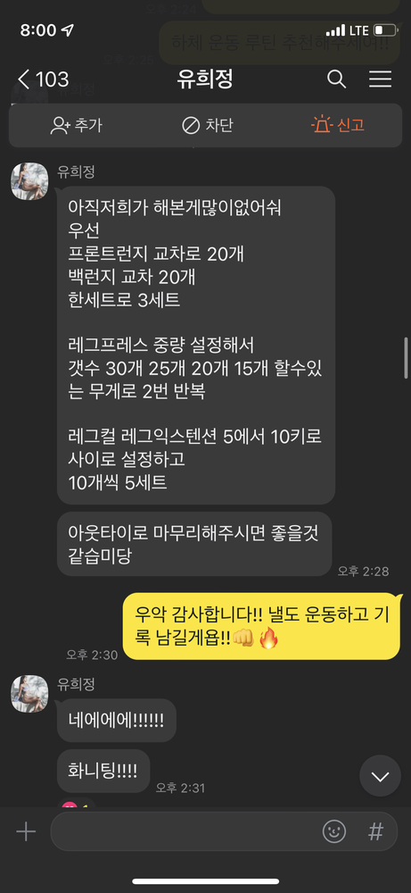 체력이랑 근력이 정말 없던 저에게 처음에는 차근차근 응원해주시고 발전될수록 그에 맞게 증량이랑 난이도도 올려주셔서 단 하루도 안빡센날이 없었지만 너무 뿌듯했어요! ㅋㅋㅌ