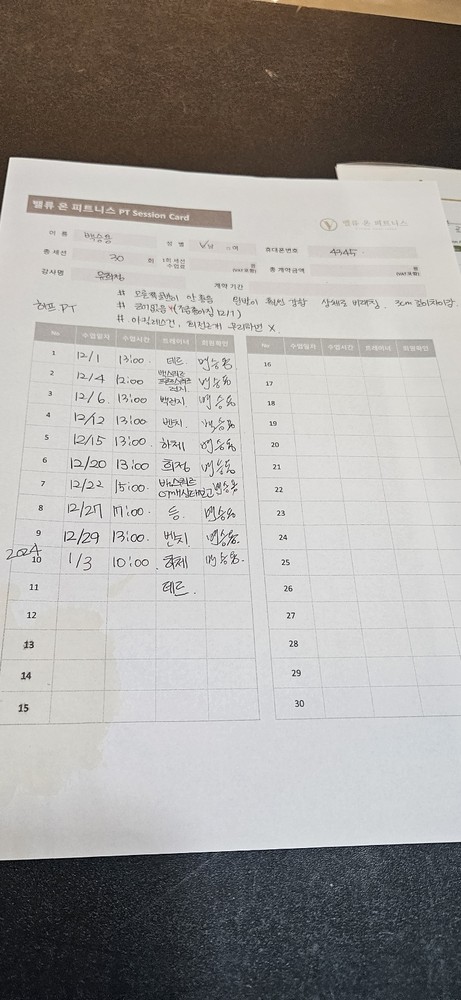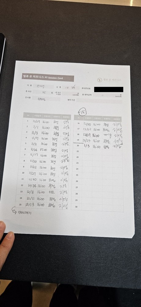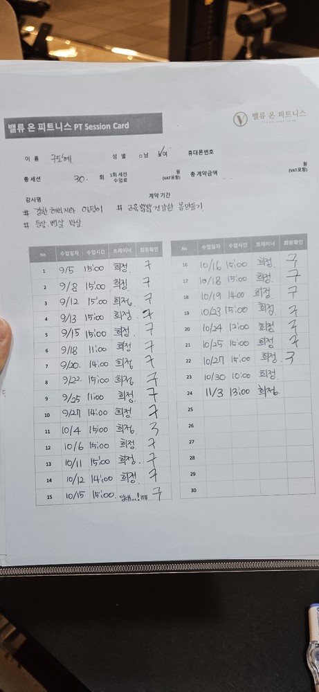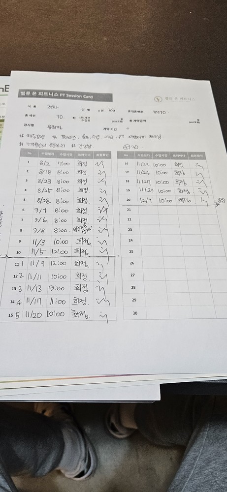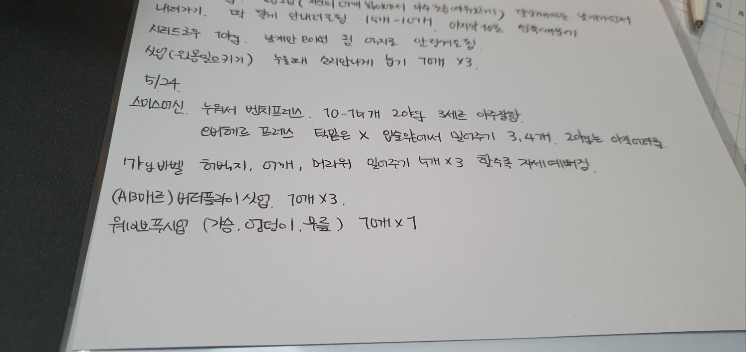 그리고, 특히! 수업끝나고 바로 운동일지를 꼼꼼하게 적어주셔서 개인운동할때도 걱정없이 운동할수있어서 잘 활용하고 있습니당:) 덕분에 개인운동도 잘다니고 있습니다 🥰