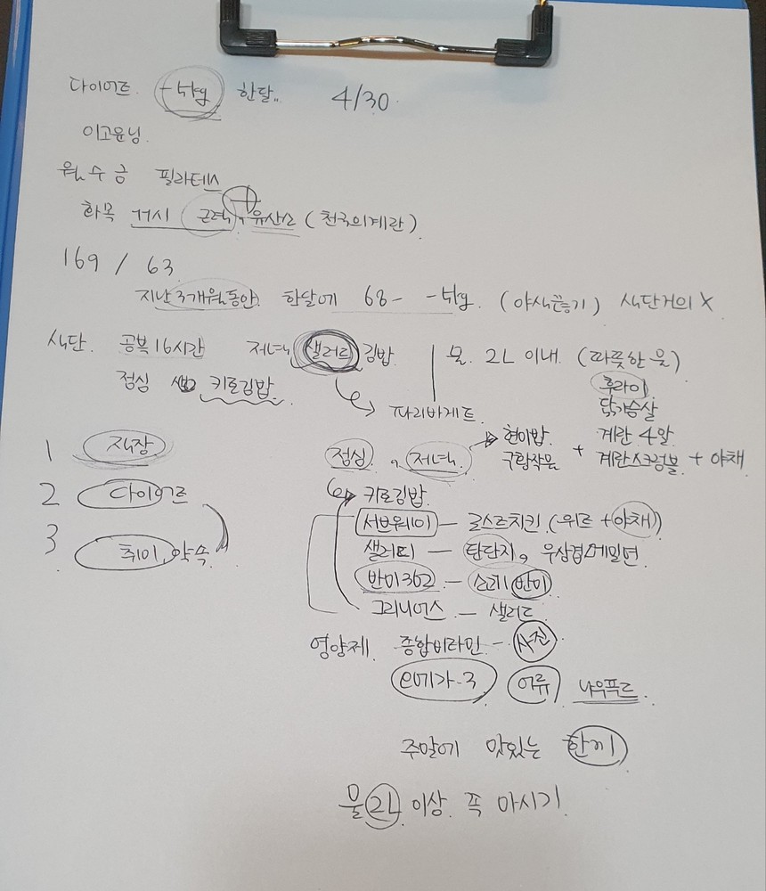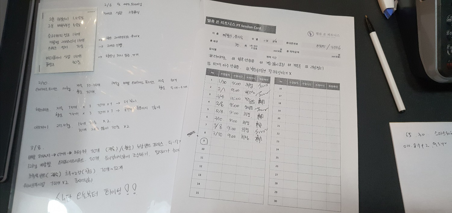 식단체크도 도와주시고, 수업 끝나면 복습할 수 있도록 적어주시는 운동 일지도 도움이 많이 됩니다.