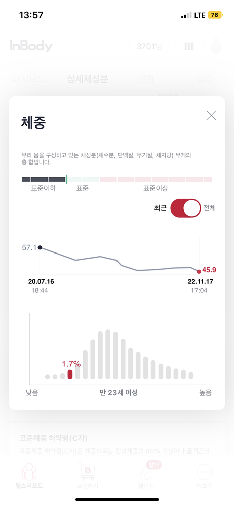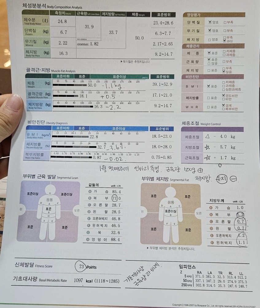 총 6키로가 빠졌고 체지방 빠지면서 근육량도 올라갔습니다