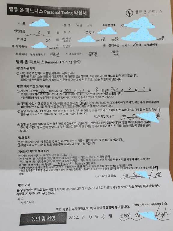일하다가 허리를 다치고 체력증진과 재활, 그리고 겸사겸사 다이어트 목적으로 처음으로 피티를 받아보았는데 너무 쉽고 재밌게 알려주셔서 잘 배웠습니당!