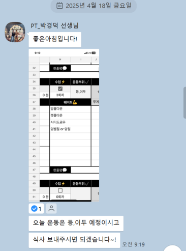 그리고 식단 체크를 꼼꼼히 해주시고, 개인 운동 시 식단과 운동 일지를 스스로 작성할 수 있도록 피드백을 주셔서 큰 도움이 됩니다.