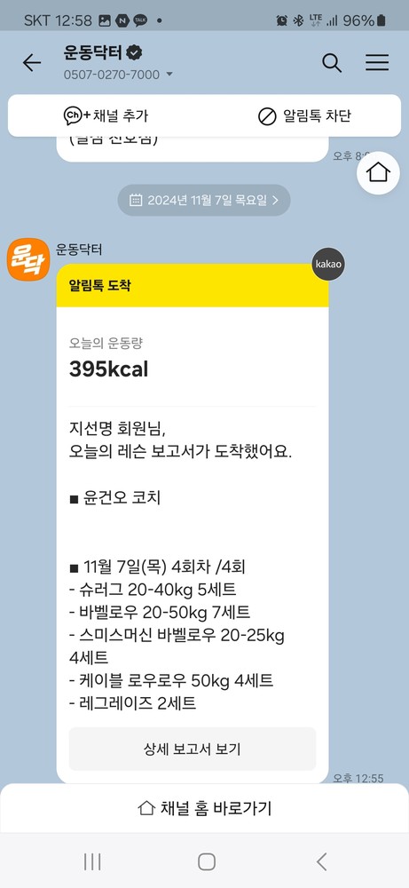 다이어트나 바프가 아니더라도 매 식단과 체중변화를 체크해주시면서 부족하거나 보완해야할 부분 피드백 주시고, 그날 진행한 운동에 대해 디테일한 보고서까지 보내주시는 섬세한 쌤 !ㅎㅎ 🫶🏻