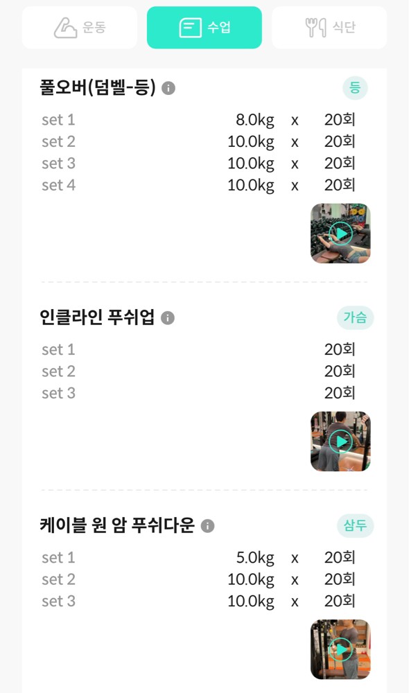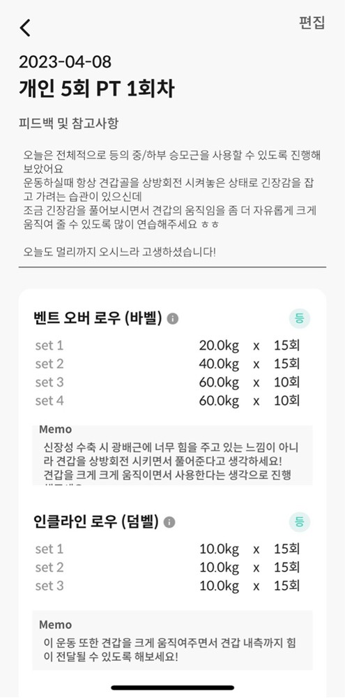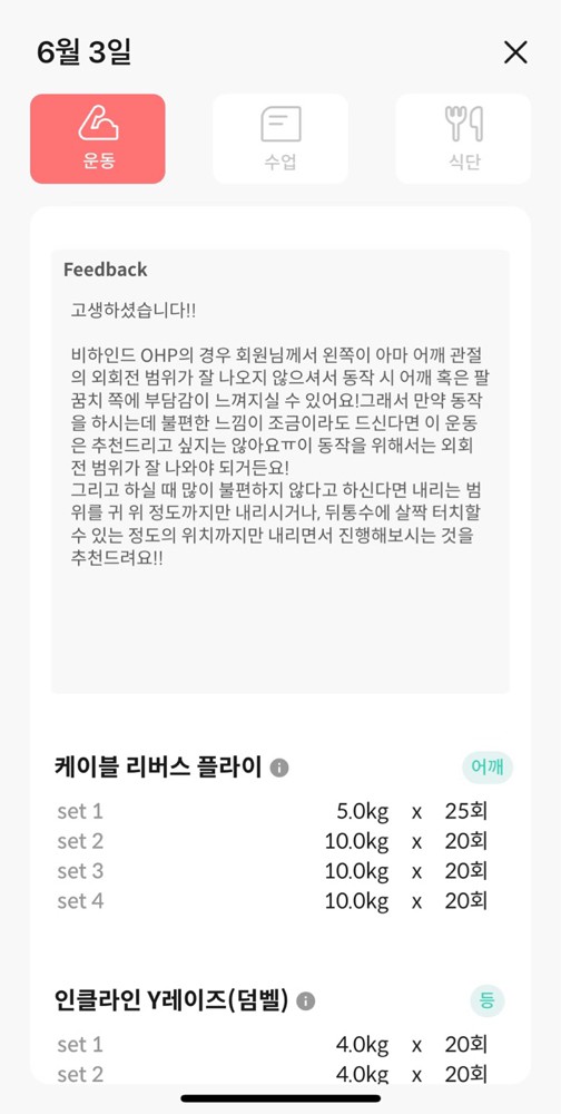 운동 전 후로 해야할 것들도 세심하게 신경 써주시고 어플을 통해서 운동하는 영상을 찍어 주셔서 복습도 쉽습니다.