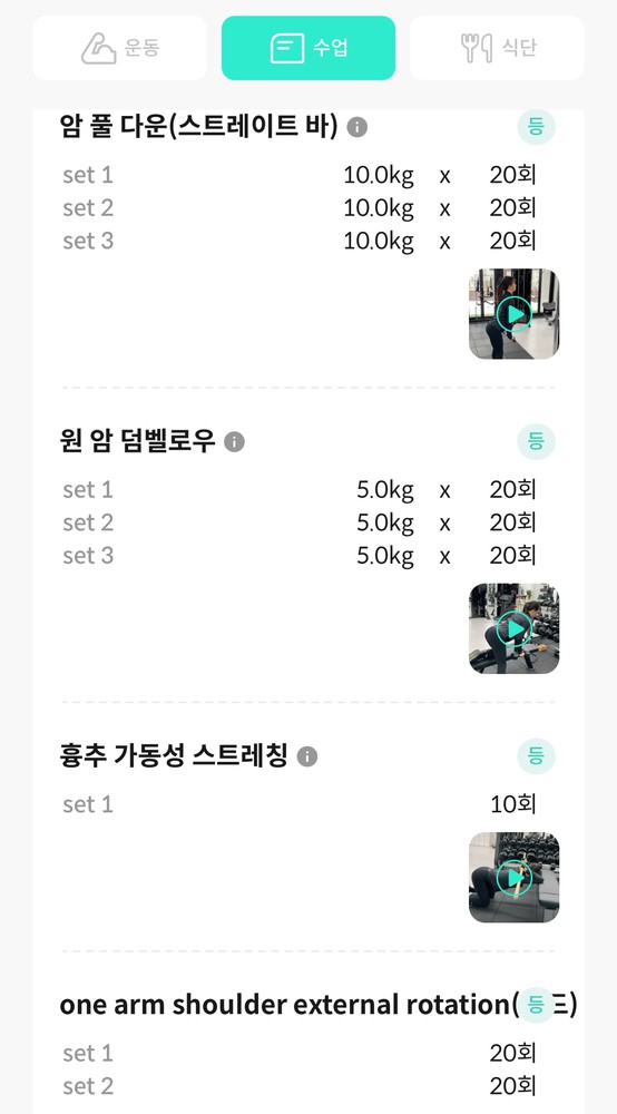 기억이 잘 안 나는 운동은 어플에 선생님께서 자세한 설명과 함께 운동 영상을 올려 주셔서 쉽게 따라 할 수도 있어서 좋았습니다 ㅎㅎ
