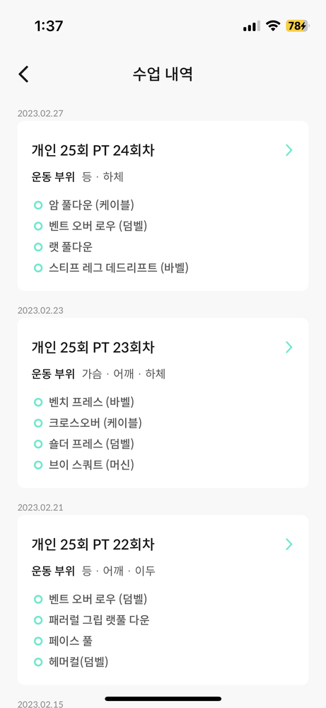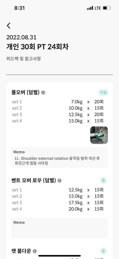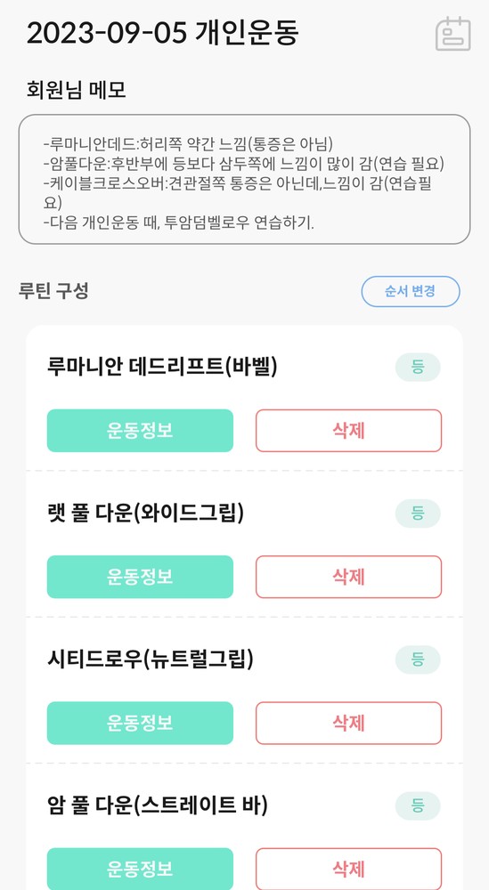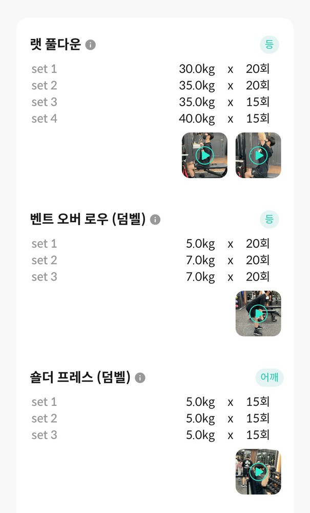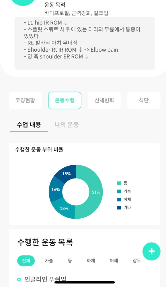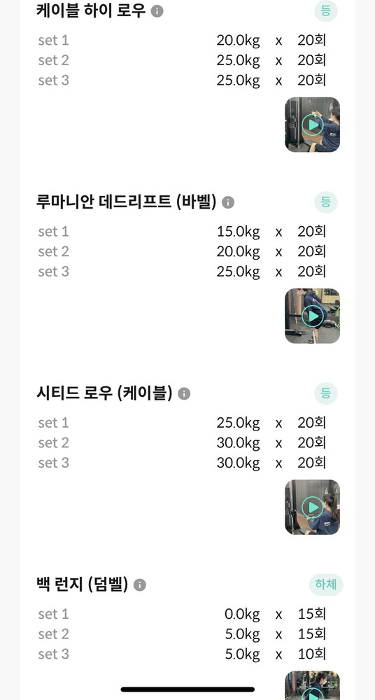 지금은 등근육 움직임도 좋아지고 운동 재밋게 느껴지게 해주셨어용~!!