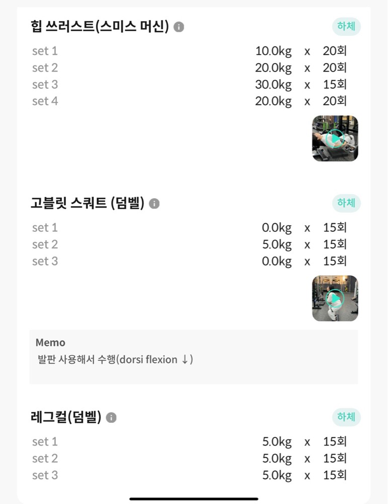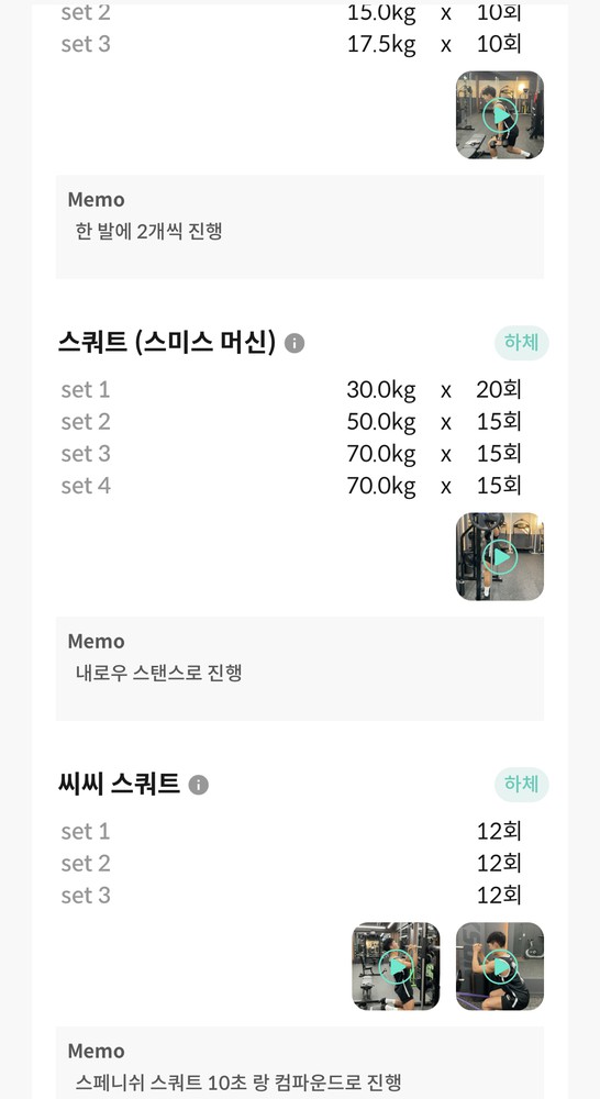 보통 직접 수기로 수업 기록을 하셔서 제가 배웠던 운동 복습하는게 쉽지 않았는데 재우쌤은 센티프라는 앱에 매 수업 했던 운동 영상을 기록해주셔서 개인운동때 정말 도움이 많이 돼요!! 제 자세가 어떤점이 부족한지 알 수 있고, 개인적인 생각이지만 영상보면서 다이어트 욕구도 확실히 오네요^^
