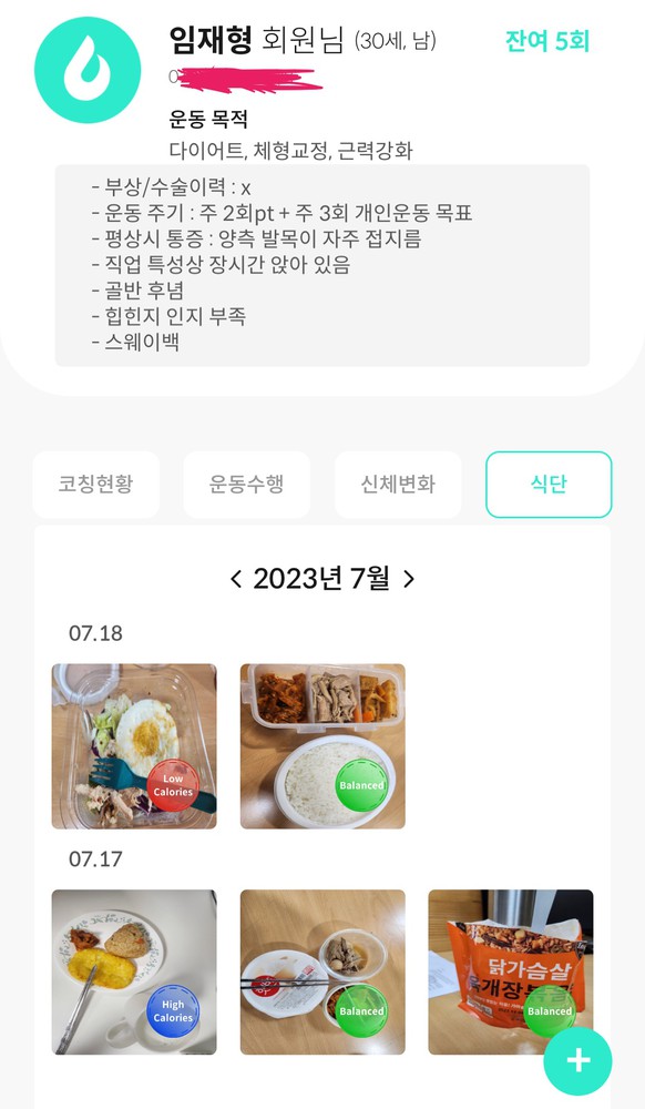 먼저 질문하지 않아도 현재 단계에서 회원이 필요할 만한 식단, 운동이 잘 되는지 여부 등을 먼저 물어봐주시니 놓칠수 있는 부분을 챙겼던 것 같습니다