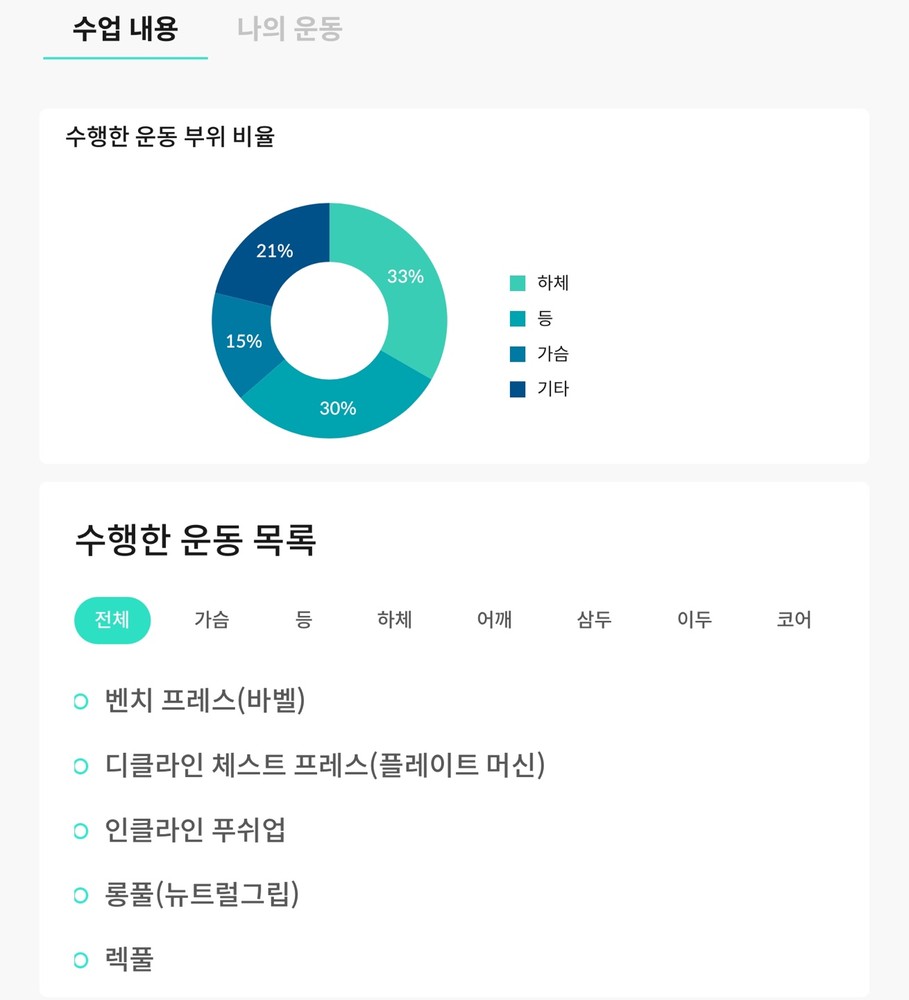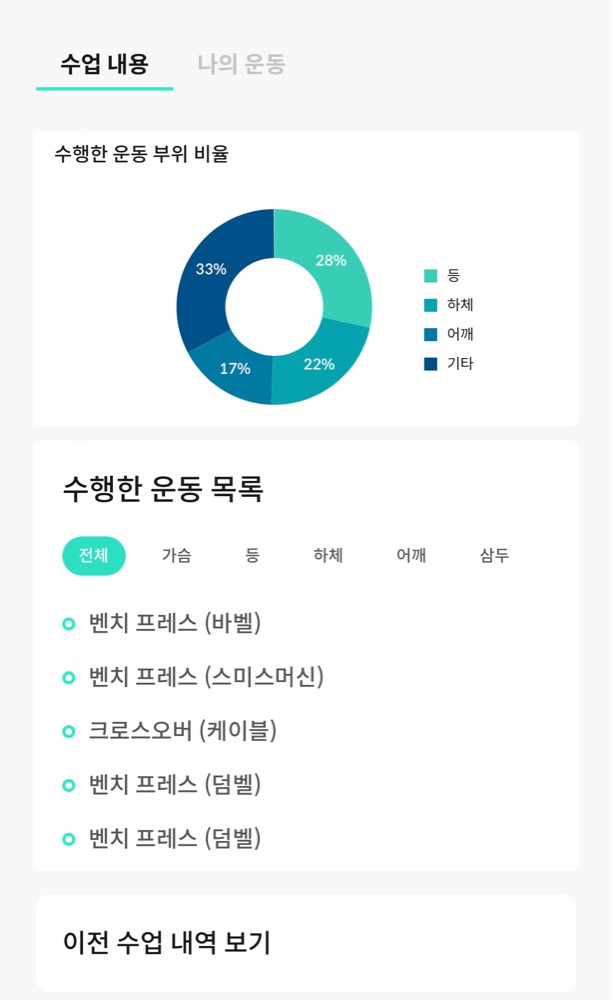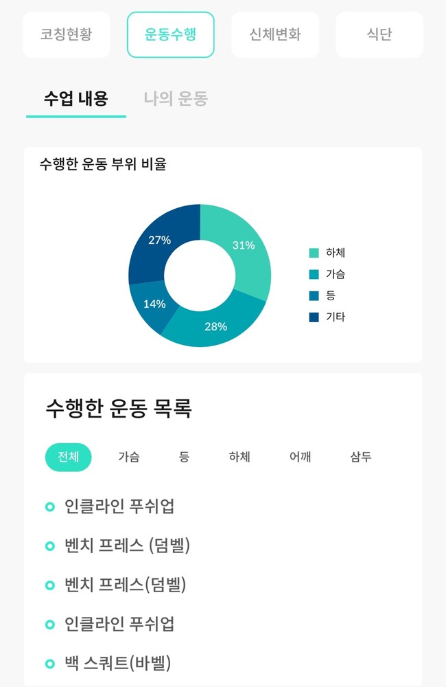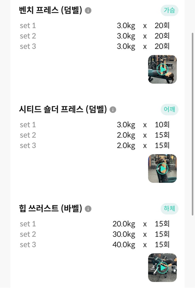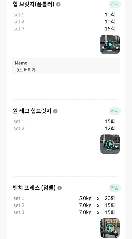 특히 앱을 통해 운동영상과 방법을 제공하고 매번 했던 운동을 기록해주셔서 언제든지 복습할 수 있는 동기부여가 되었습니다.