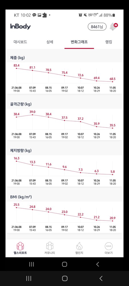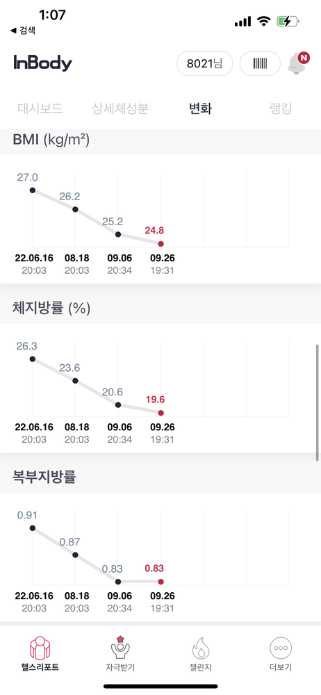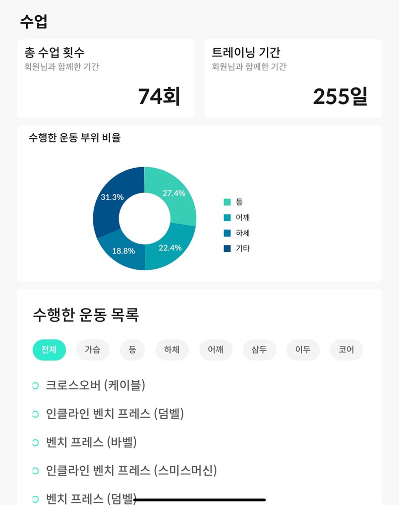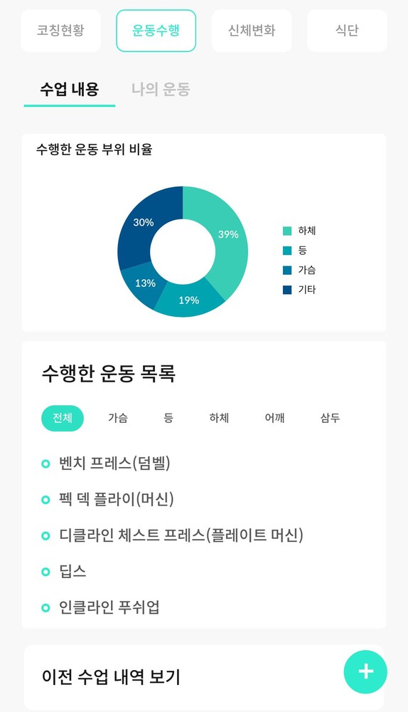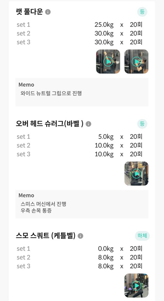 특히 앱을 통해 운동영상과 방법을 제공하고 매번 했던 운동을 기록해주셔서 언제든지 복습할 수 있는 동기부여가 되었습니다.