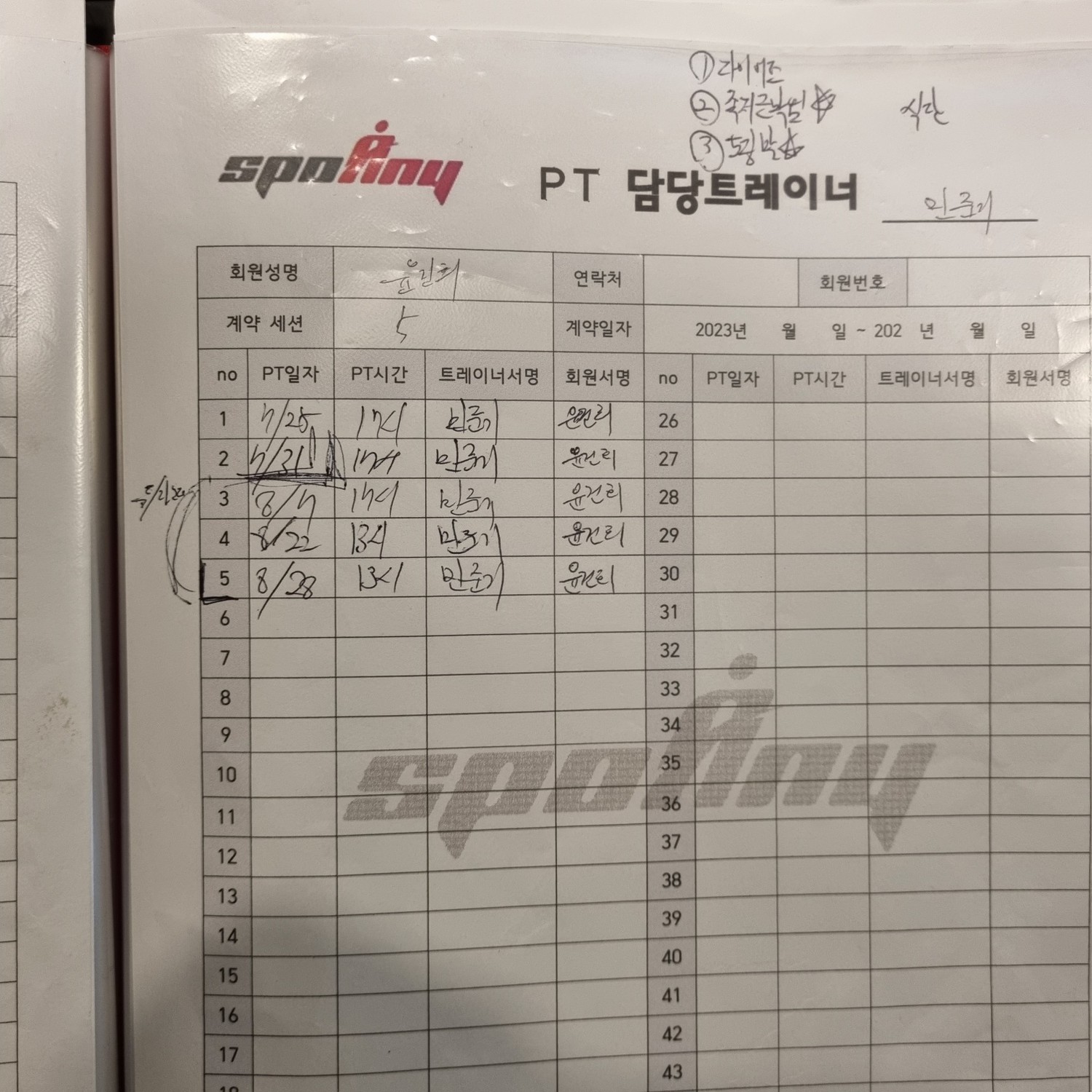 체험 OT 후 때 너무 잘 알려주셔서 5회 피티 등록했습니다. 짧게 등록했지만 기간동안 많이 배웠고 식단도 짜주셨어요.