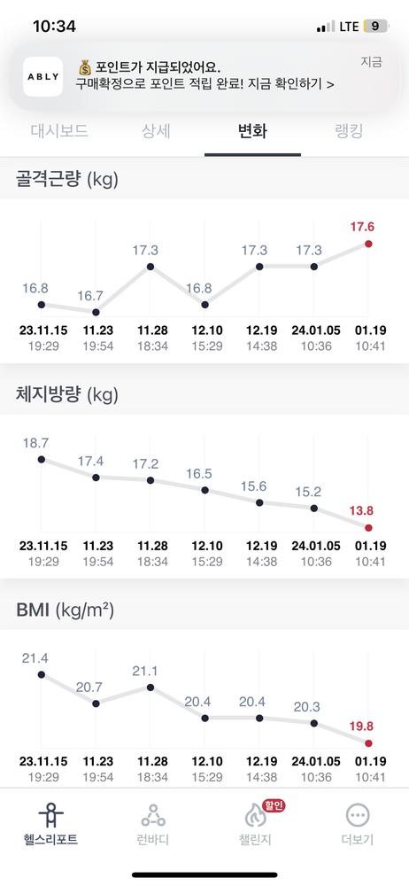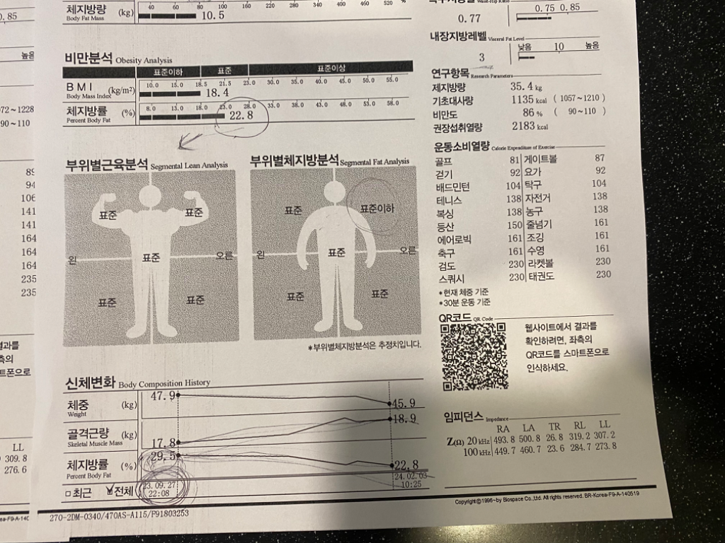 그리고 2달도 안 되어 체지방이 줄고 근육량이 증가하는 변화를 확실히 느낄 수 있었습니다! 🎉
