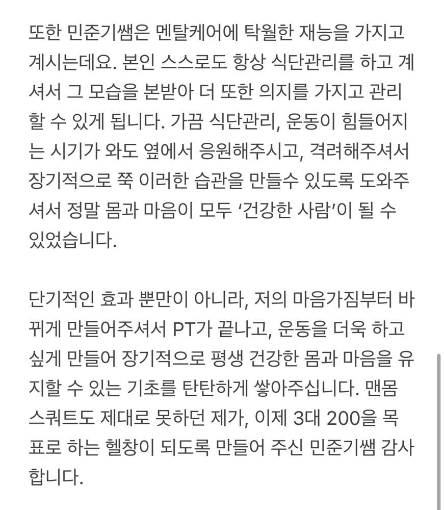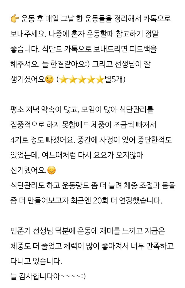 자신이 추구하고 변화하고 싶으신분들은 제가 감히 말씀드리지만 민준기 트레이너님을 강력 추천드립니다!