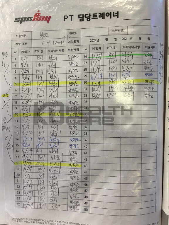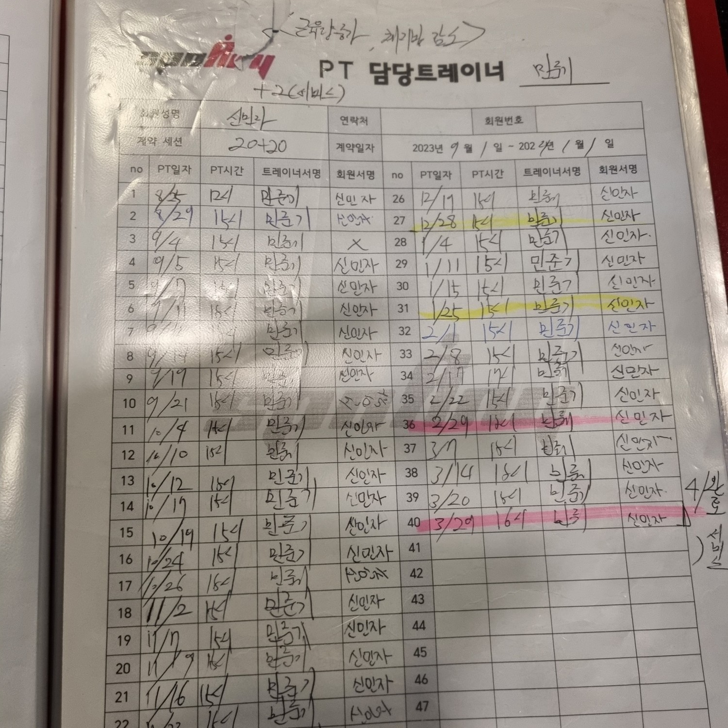 그리고, 매번 수업전에 수업내용을 미리 알려주셔서 마음의 준비(?)를 하도록 해주시고 기록을 해 둘수 있어서 혼자 운동하는 날에도 매우 도움되고 있습니다.