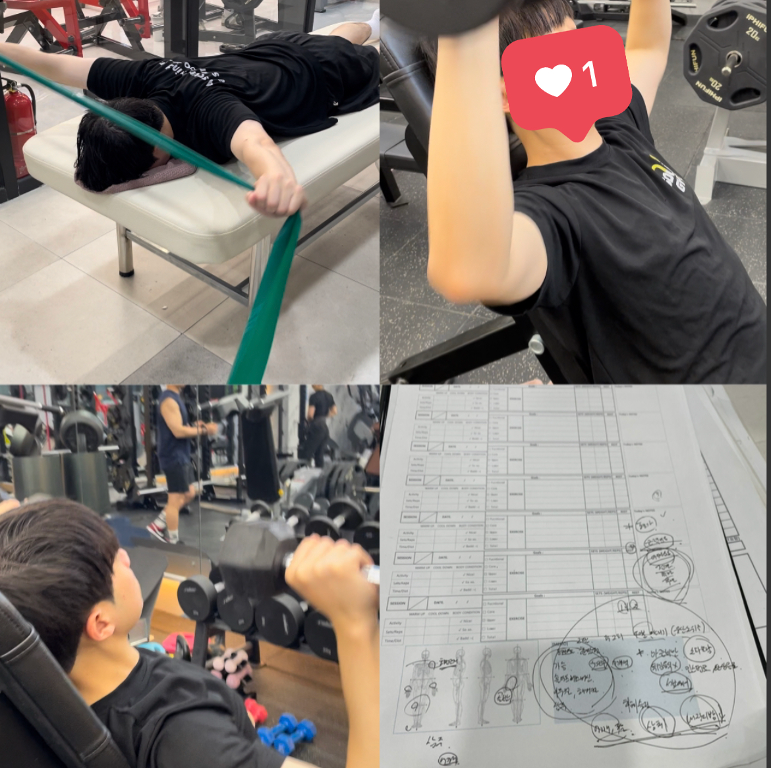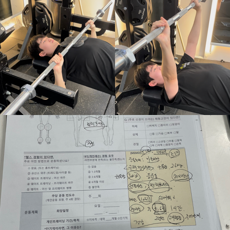 평소 가슴 운동을 한다고 생각했는데, 직접 패턴을 체크해 주시면서 제가 어깨 개입이 많고 가슴 자극을 제대로 못 쓰고 있었다는 걸 알게 됐습니다.