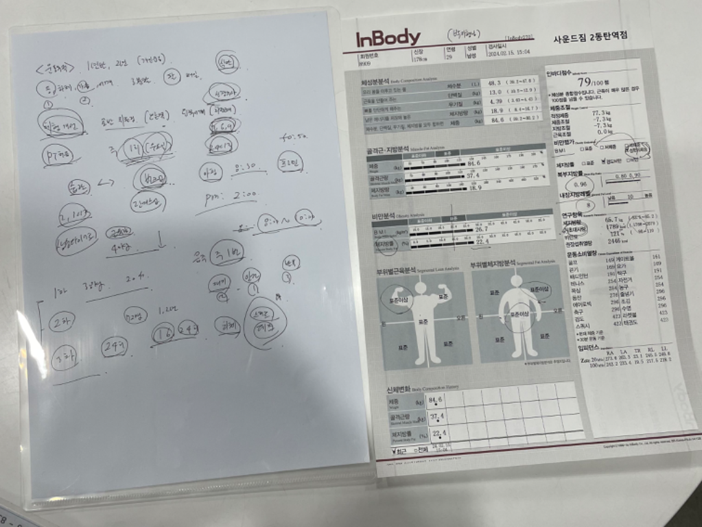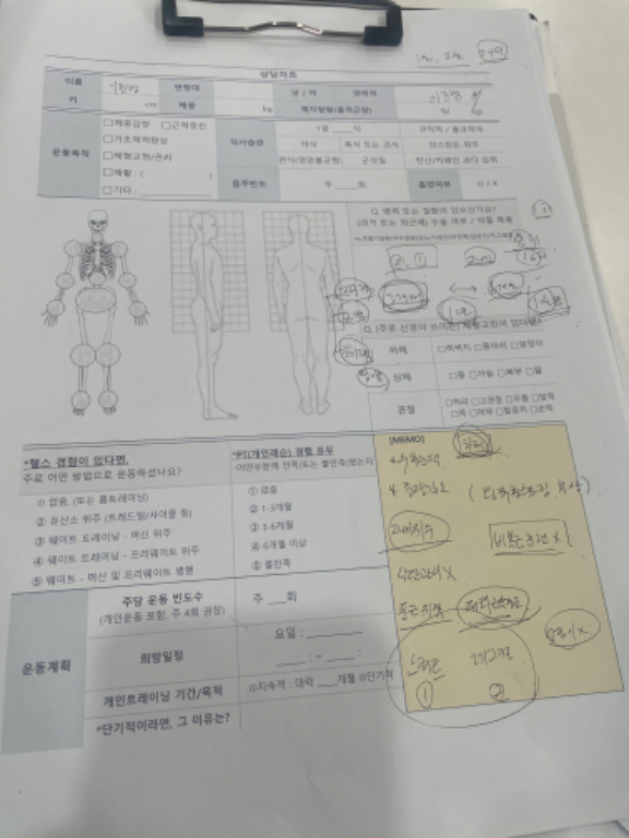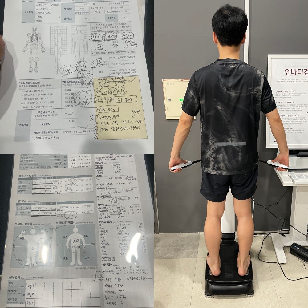 우선 박찬현 트레이너님은 첫 수업 이전에 인바디 측정, 부상여부 확인, 운동경력 등의 요소들을 세세히 체크해 주신 후 제 상황에 맞는 식단과 건강체크를 진행해 주셔서 체계적인 수업이라는 생각이 많이 들었습니다.