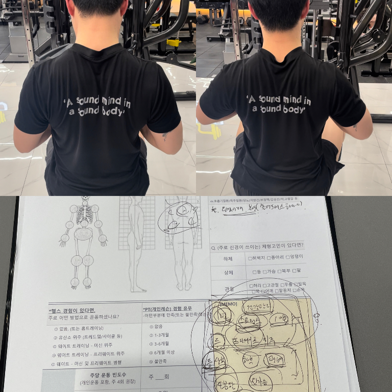 이전에는 제가 어떤 체형이고 어디가 틀어졌는지를 아예 몰랐는데 트레이너님이 사진 찍어주시고 어디가 잘못됐는지 정확히 체크해주셨습니다 운동하면서는 오랜만에 헬스에대한 흥미를 느꼈습니다 정확한 자세와 정확한 자극을 찾게되었습니다