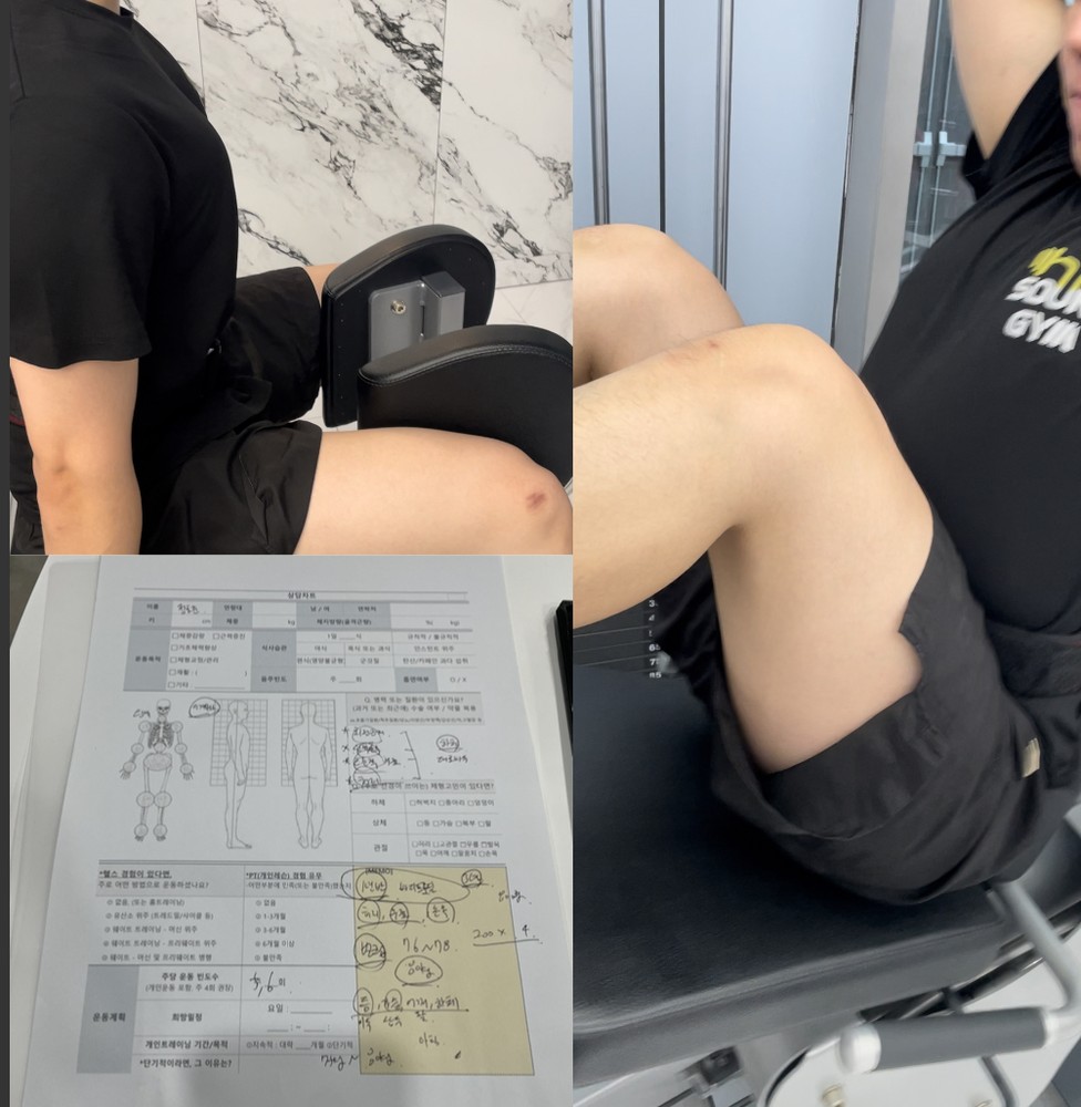 하지만 생전 처음 와본 헬스장이기에 운동지식이 전무한 탓에 평소에 쓰지 않던 근육을 사용하려다보니 많이 버벅댔지만, 친절히 알려주셔서 차차 감을 알아가기 시작했습니다.