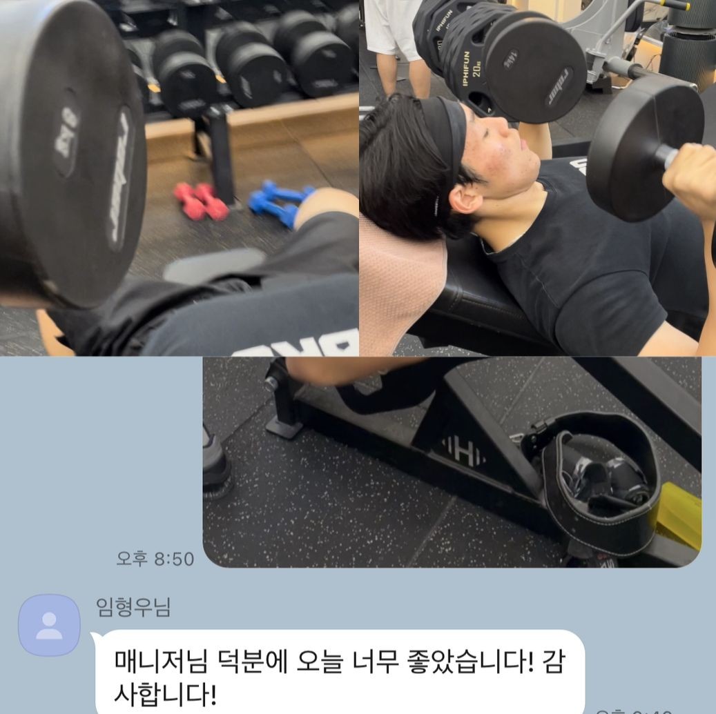 또 헬스에 흥미를 가질 수 있게 해주십니다. 헬스장에 대한 막연한 두려움을 가지고 있었는데, 쌤과 수업하면서 흥미를 붙이게 되었고, 수업이 없는 날에도 꾸준히 나가서 운동 중에 있습니다.
