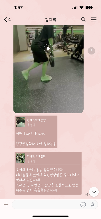 매수업마다 다른 루틴으로 알차게 이끌어주신 건 말할 것도 없고, '수업 후에도 스스로 운동할 수 있게 만들어주기'가 주 목적이시라며 늘 영상에 부가설명까지 적어서 보내주시는 정성보고 진짜 감탄했어요😳👍🏻👍🏻