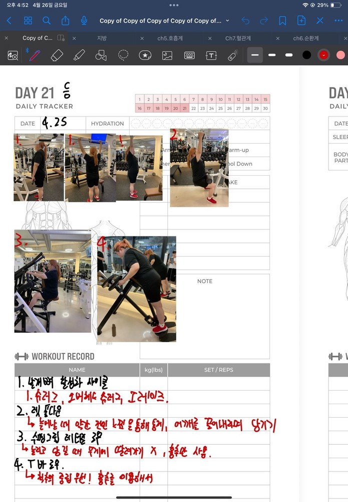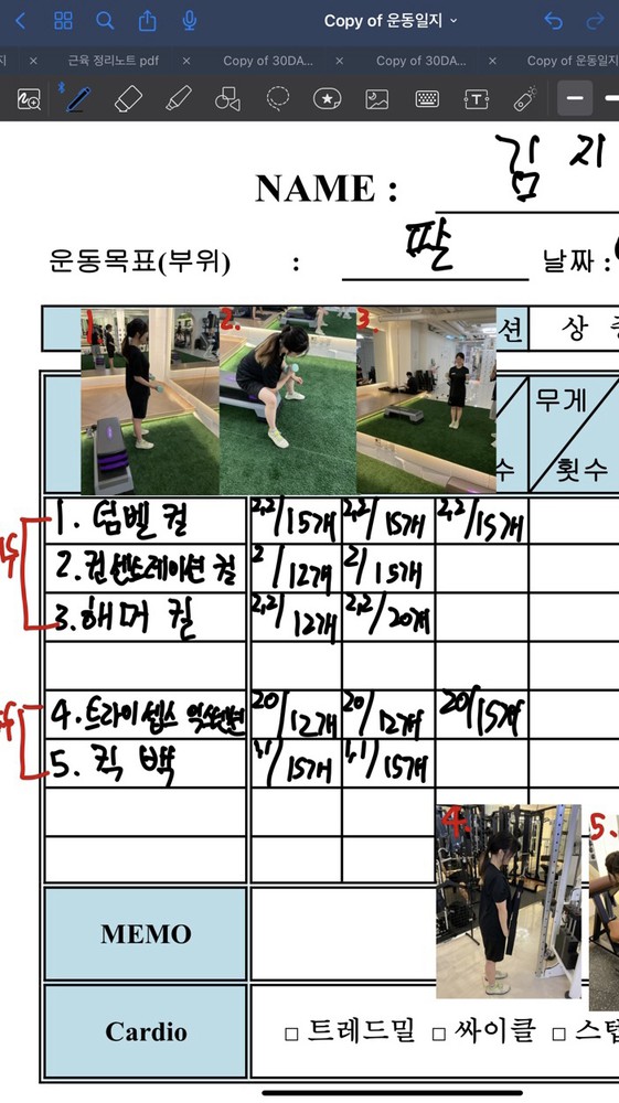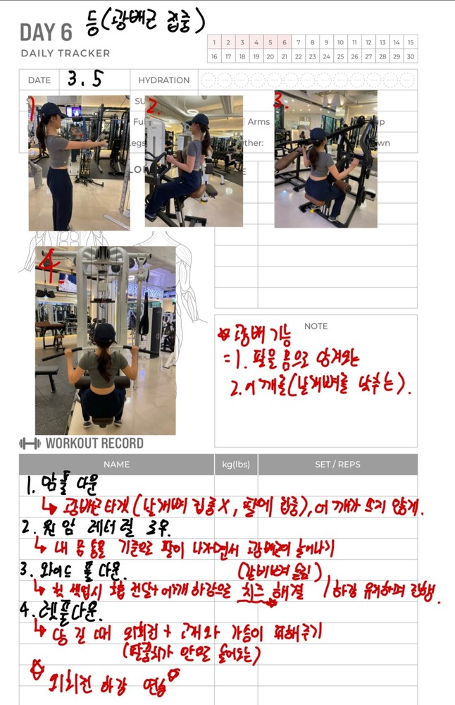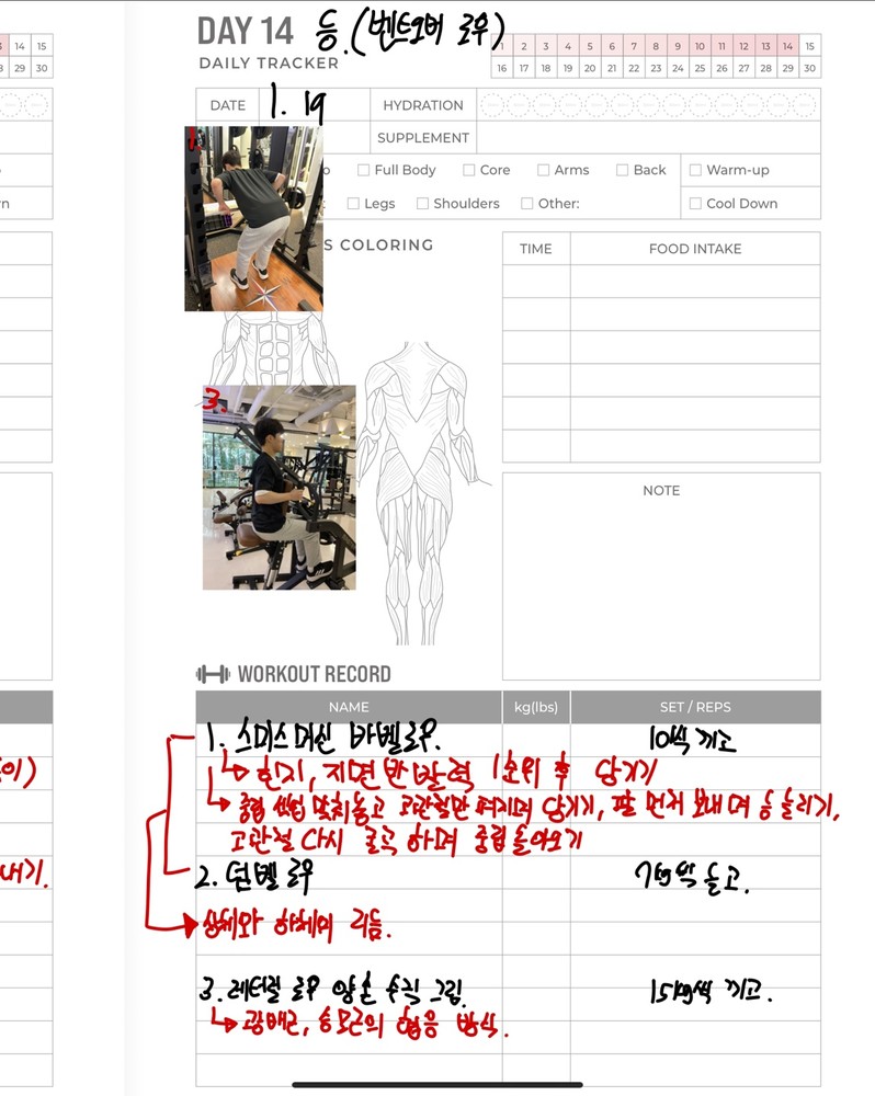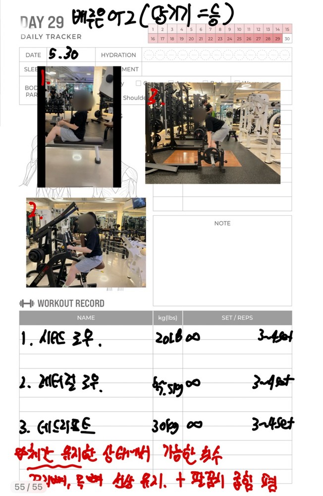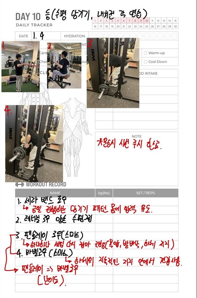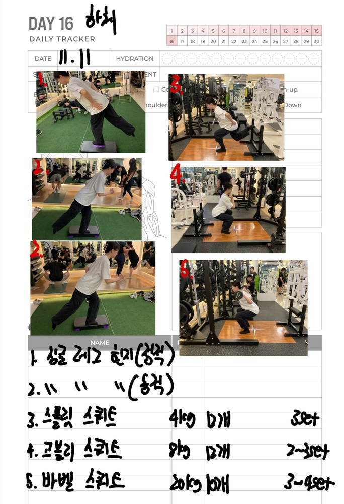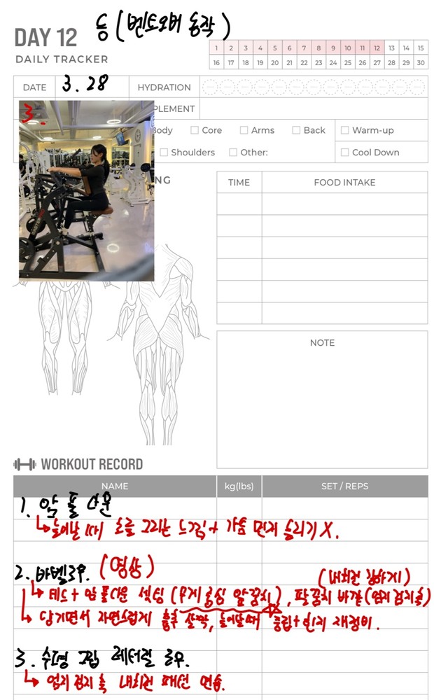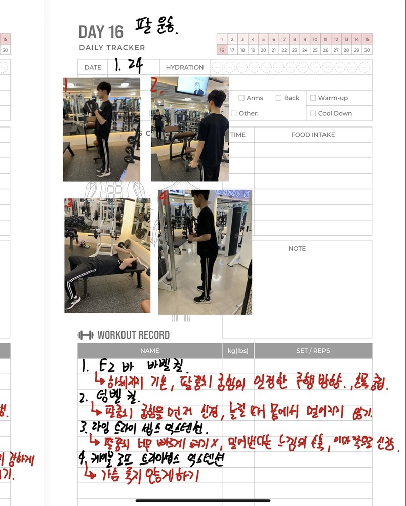 우선 가장 좋은 점은 매번 수업때마다 운동사진을 찍어주시고 메모를 해주셔서 수업이 없는 날에도 개인운동을 나와 기록을 보면서 운동할 수 있었어요!!