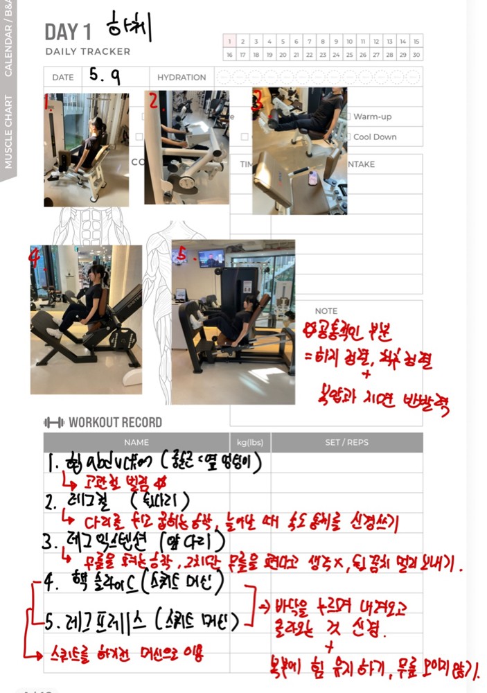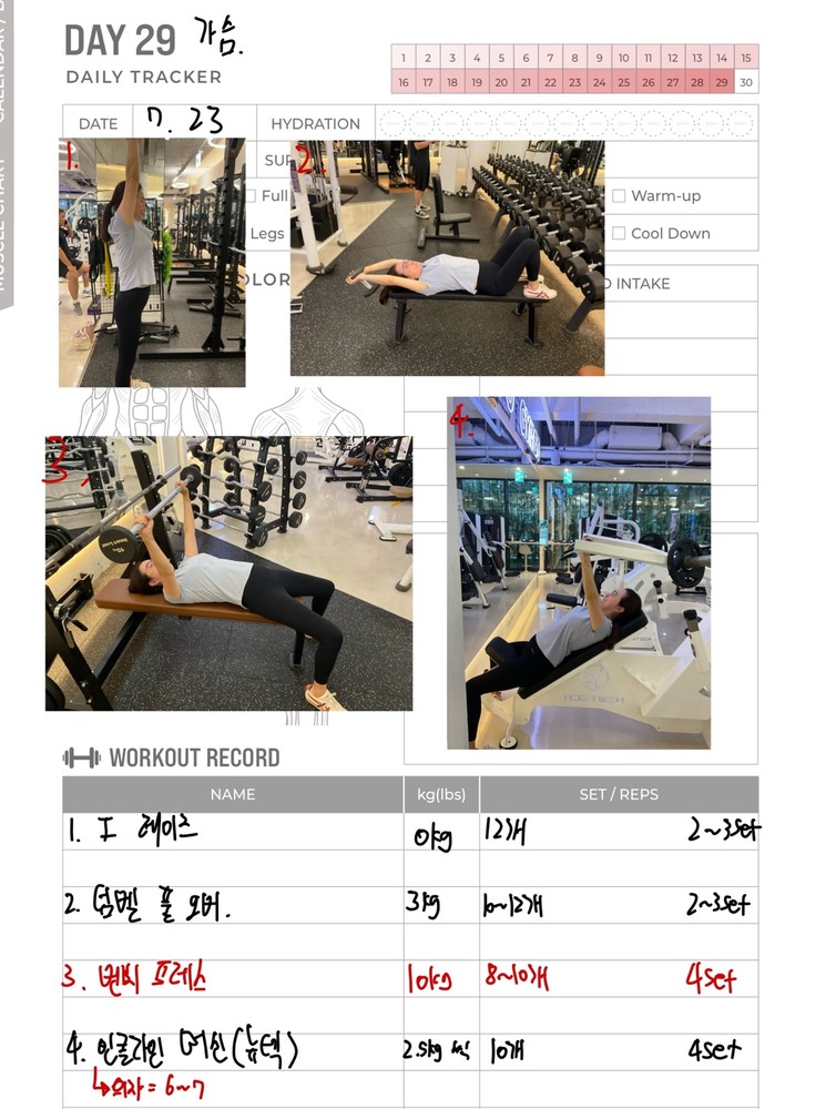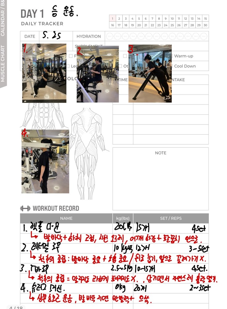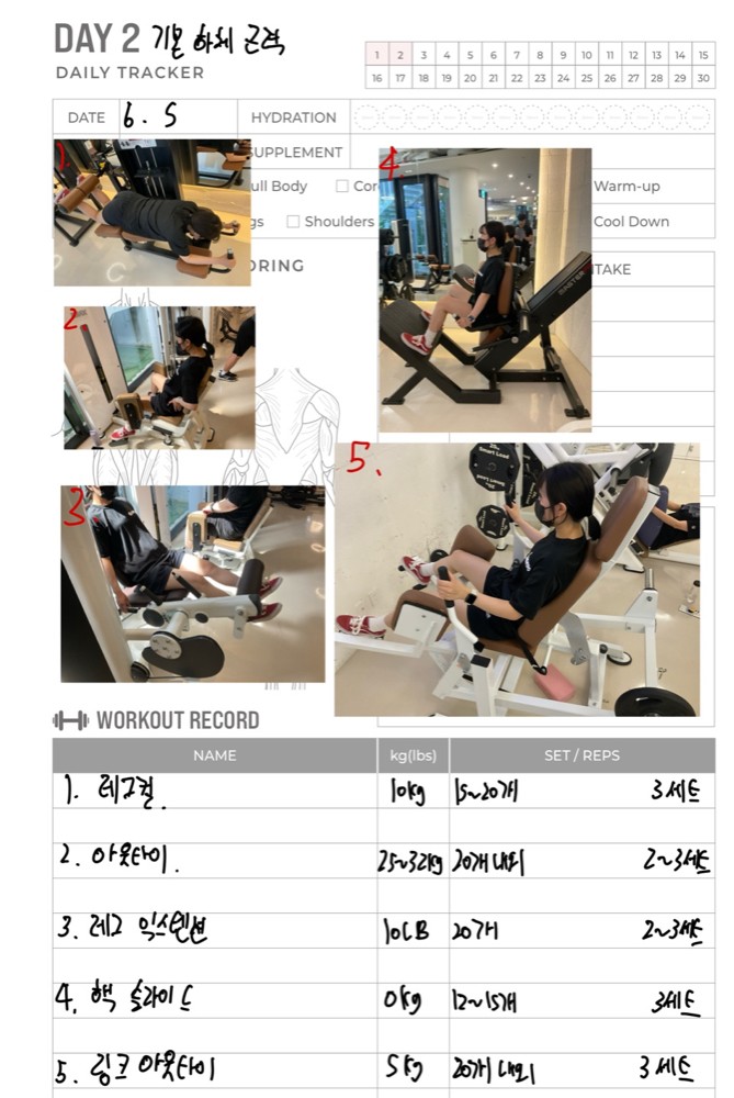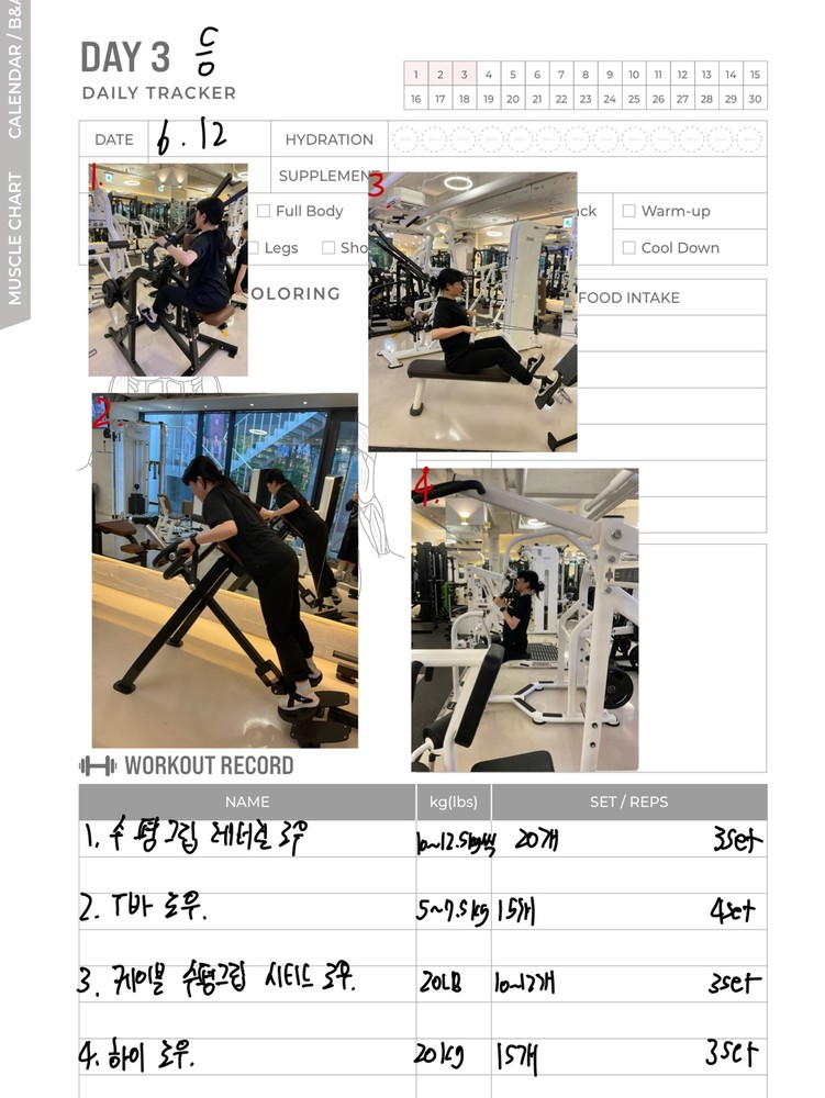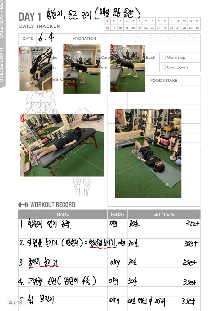 일지 작성도 해주셔서 개인운동할 때 참고해서 하기 좋아요!