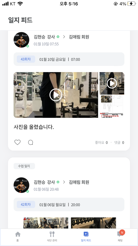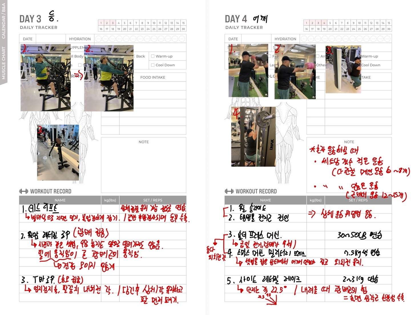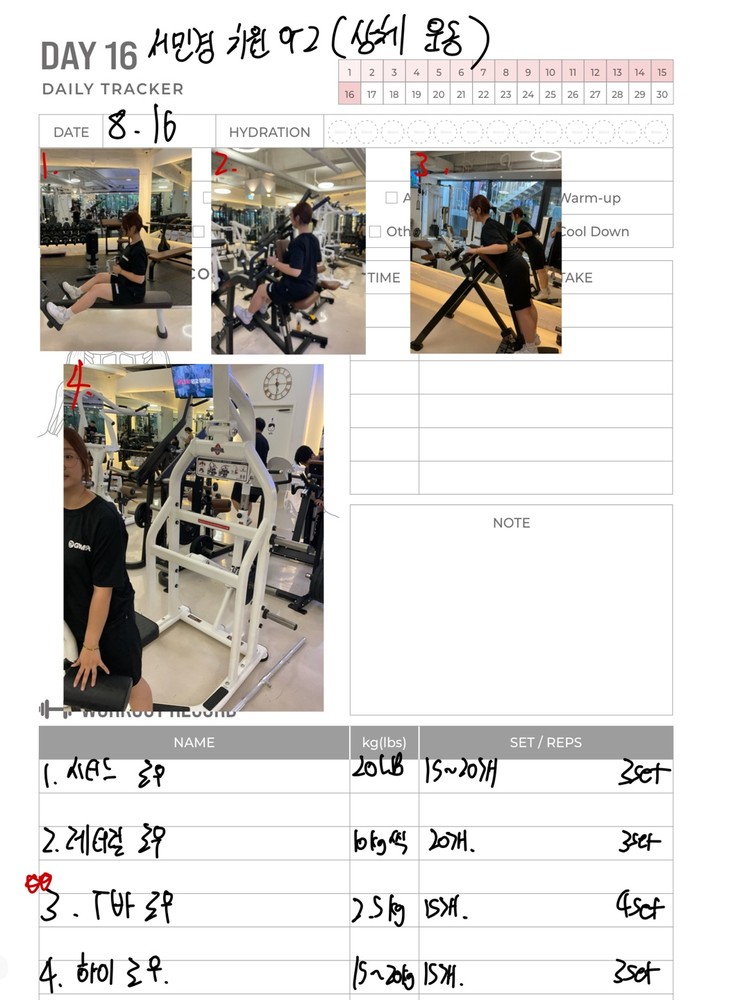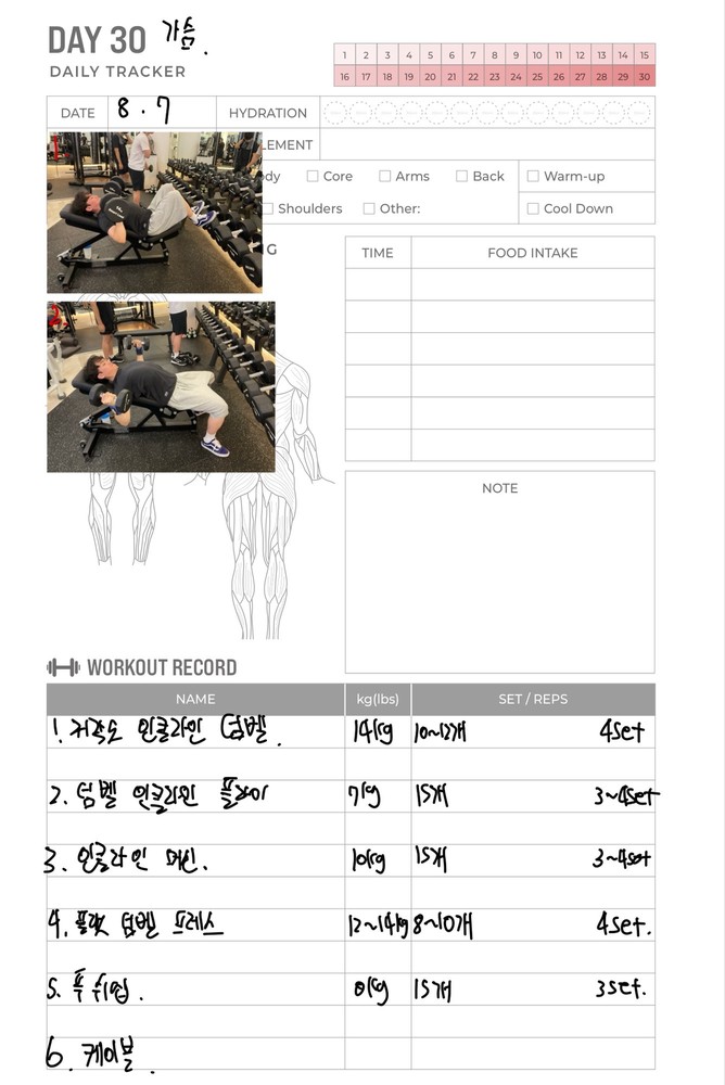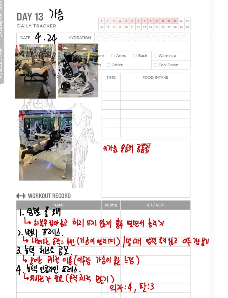 일지 작성도 해주셔서 개인운동할 때 참고해서 하기 좋아요!