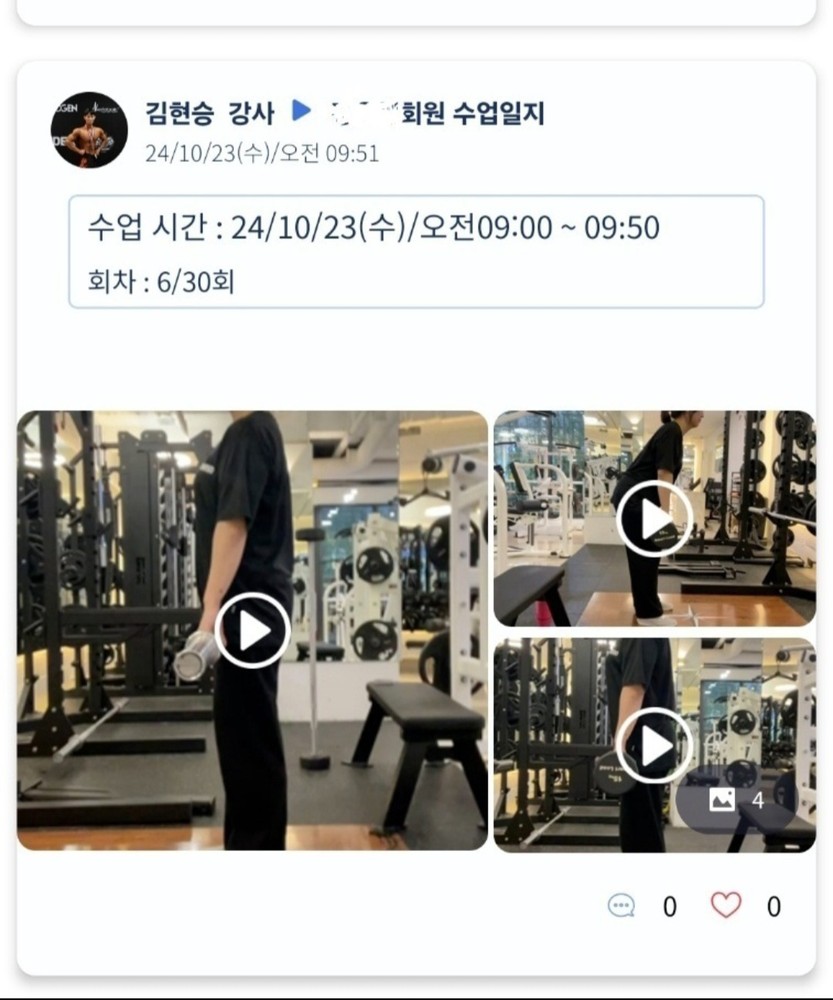 다이어트를 목적으로 운동 시작하게 되었는데, 정확한 운동기구 사용법과 자세를 알려주십니다👍🏻 늘 친절하게 수업해주시구 식단관리까지 해주셔서 열심히 하구 있습니다. 수업일지보구 개인운동도 열심히 해볼게요☺️