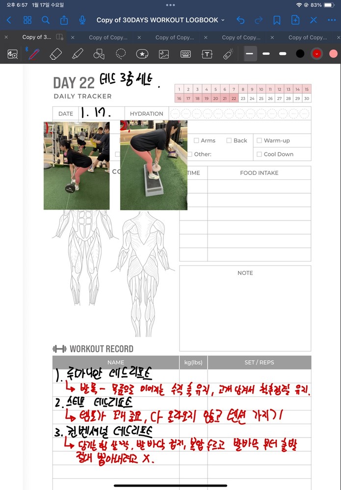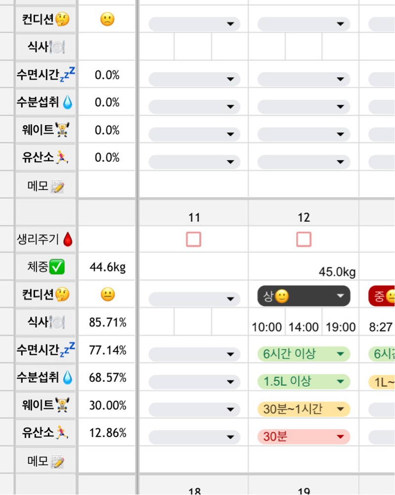 운동을 열심히 하면 쌤이 구글 드라이브로 다이어트 관련 기록 시트도 공유해주셔서 매일매일 체중, 생리주기, 운동량 등을 체크할 수 있어서 더욱 체계적으로 운동을 할 수 있습니다!