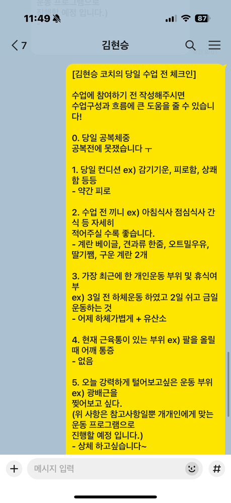 운동지도와 관리 때문에 피티라는거에 대한 꽤 심했는데 김현승 선생님께서 오티 수업 이후에도 매번
