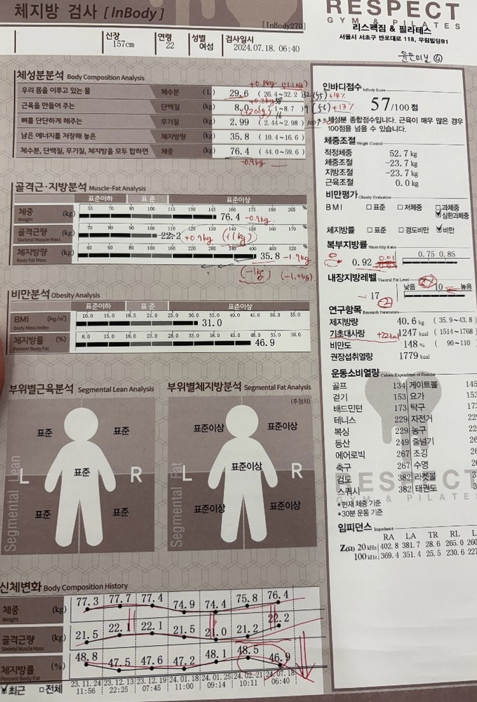 직장다니며 하다보니 운동을 많이는 못했고 일주일에 두번씩 대여섯달 했더니 이런 결과들을 얻네요. 워낙이 운동과는 담을 쌓고 살아왔던 터라 운동 좀 할라치면 발바닥이며 종아리며 쥐도 많이 났더랬는데 그때마다 즉시 마사지도 열심히 해주시며 도와주셔서 너무 감사했어요. 쌤을 만난건 행운인듯요!