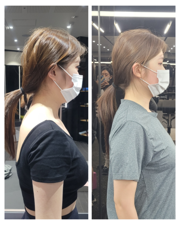 그래도 운동을 깨작깨작 계속 해왔던터라 잘 할수있을줄 알았는데 심각한 비대칭과 ,전방경사, 라운드숄더 등이 심각해서 자세교정과 다이어트를 병행하며 수업을 받았습니다