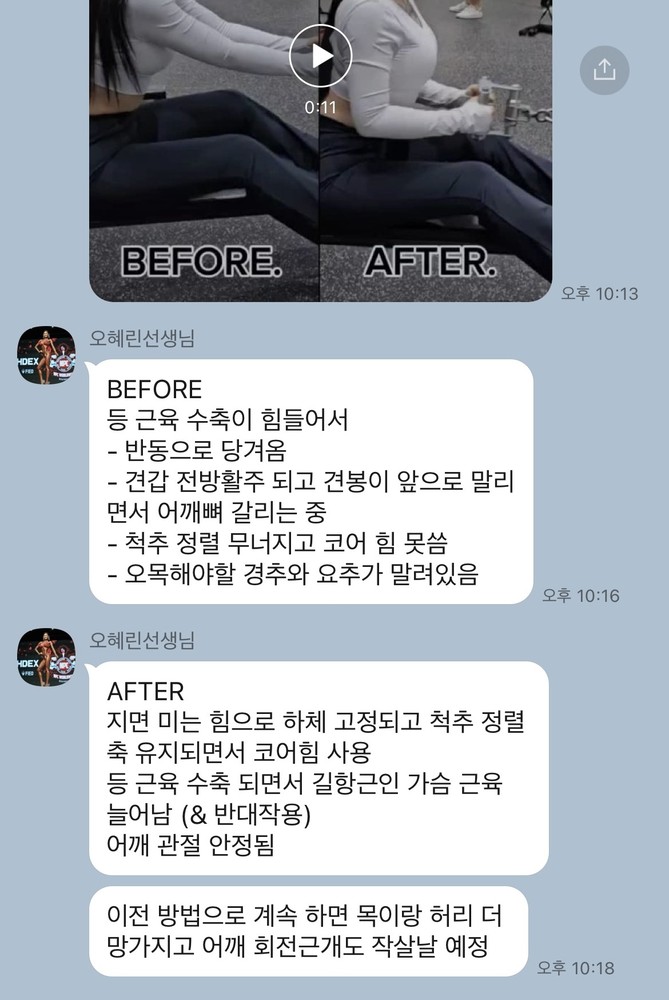 제가 10년동안 PT하면서 만난쌤들중 혜린쌤은 제가 평생 함께 운동하고싶은 그런 트레이너세요<3